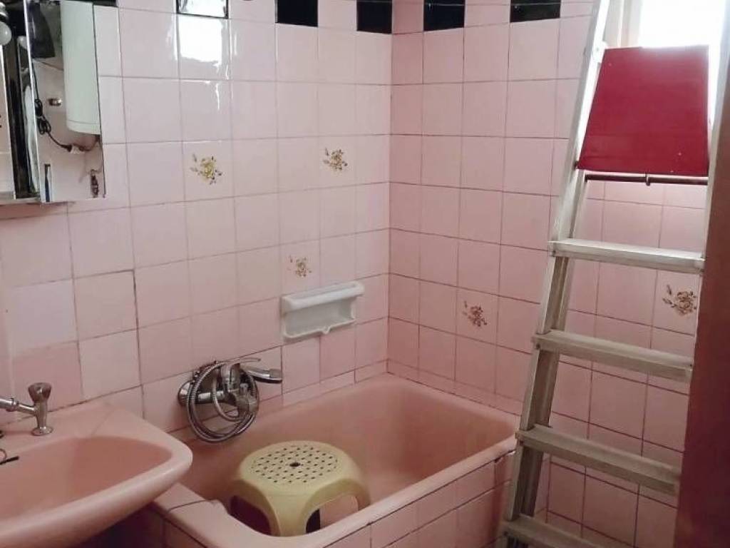 The apartment consists of 3 bedrooms, a living–dining room, a kitchen, a storage room, a bathroom, and a WC. Additional features include an elevator, autonomous heating, a security door, mosaic & wooden flooring, and wooden window frames (German-made). It requires partial renovation.