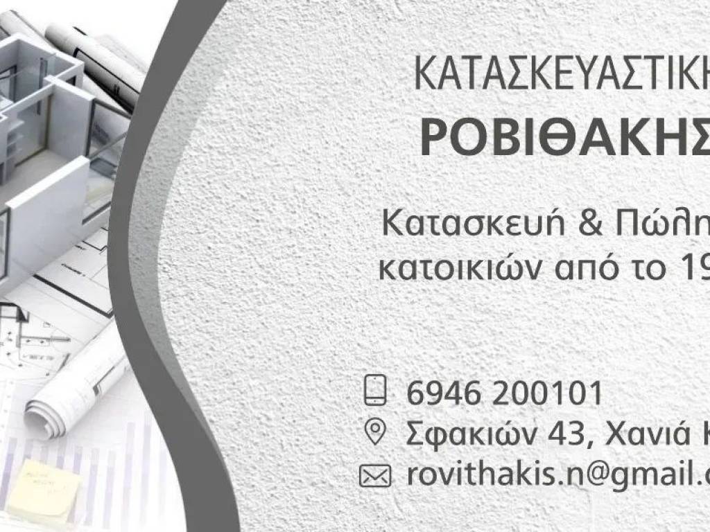 Απο έμπειρο κατασκευαστή στα Χανια πωλείται διαμέρισμα υπό κατασκευή χωρίς μεσιτική αμοιβή με παραδοση σε λιγους μηνες. Με 2 υπνοδωμάτια, 1 WC 96τμ μικτά 82τμ καθαρα και με 2 μεγαλες βεραντες,Ενεργειακής κλάσης Α++, κοντά στα γραφεία της ΔΕΗ πισω απο το LIDL σε αναπτυσσόμενη περιοχή σε καινούργιο σχέδιο πόλεως δίπλα σε πάρκα,σούπερ μάρκετ,σχολεία,καφέ,κόμβο εθνικής οδού και πολλά άλλα προνομια της περιοχης.Με πάρκινγκ,κέλυφος εξωτερικής θερμομόνωσης, fan coil units με αντλία θερμότητος ,για ψύξη και θερμανση , σίτες, προεγκατασταση ταχυφορτιστή ηλεκτρικού οχήματος,καμερες ασφαλειας,πατώματα με πλακάκια υψηλής ποιότητας,πορτες θωρακισμένες,μοντερνες κουζίνες και ντουλάπες, ανελκυστήρας με πρόσβαση ΑΜΕΑ, πανοραμική θέα,Κατασκευή υψηλών προδιαγραφών ΠΑΡΑΚΑΛΩ ΟΧΙ ΜΕΣΙΤΕΣ