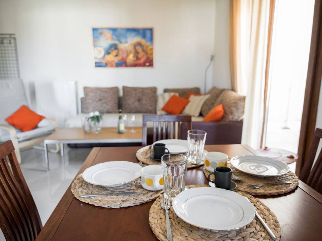 Luxurious studio apartment with large kitchen, large living room and front balcony overlooking the beach of Perea, fully furnished and equipped with all household appliances and household goods. King-size bed, washing machine, 2 TVs. It has its own parking space in the building.