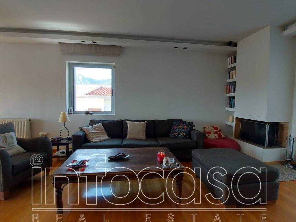 Pallini – Kantza: Luxury Duplex Apartment 145 sq.m. In a quiet and verdant neighborhood beneath the Kantza hill, a stunning two-level duplex apartment of 145 sq.m. is available for sale. Situated on the 2nd floor with an attic, this property was built in 2007 and stands out for its excellent condition, refined design, and superb orientation. On the first level, there is a spacious and bright living room with a fireplace, a functional open-plan kitchen fully equipped with high-end electrical appliances, one bedroom, and a bathroom. A beautifully crafted wooden staircase leads to the attic, where you will find two bedrooms, a bathroom, and a smaller room used as a dressing area. On the same level, there are multiple wardrobes, a separate laundry area for washing machine and dryer, and an indoor storage room offering additional organization space. The property features autonomous heating with oil, independent heating per level, security door, aluminum frames with double glazing, mosquito screens, awnings, alarm system, air conditioning, and wooden floors that add warmth and character to the space. It also includes a storage room and a closed garage of 15 sq.m. The apartment is front-facing, bright, airy, and cross-ventilated, offering unobstructed views of the sea and the mountains. It is a luxurious residence that perfectly combines comfort, functionality, and aesthetics. Located in a peaceful neighborhood that ensures quality living and tranquility, it is within walking distance from shops, public and private schools (such as Athens College and the German School of Athens), as well as sports and artistic activities for children. A truly ideal property for families or for anyone seeking a high-standard home with breathtaking views and all modern amenities. Price: 385.000€. Infocasa, contact phone: 6977217880, 2106233945, email: info@infocasa.gr, www.infocasa.gr