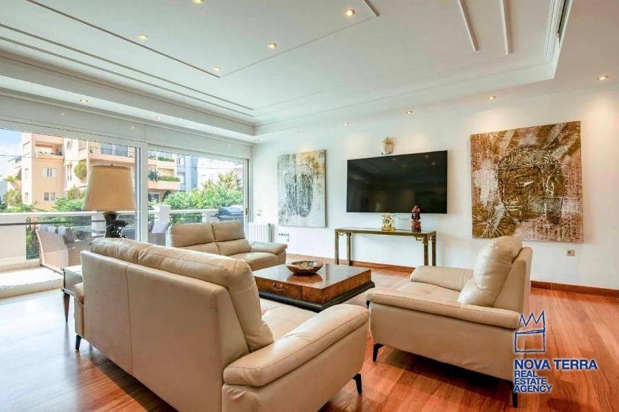 VOULA - VOULA KATO, Apartment,, Sale, 150 sq.m, year built 2012, 3 rooms, 1st, Various Characteristics: Balcony, Bath (2), Escalator, Fire Place, Kitchen, Living room, Store Room, Swimming Pool, Master Bedrooms: 1 Master Bedroom, Flooring: Wooden floor, Heating: Air Conditioning, Autonomous Heat oil, Access road, Aluminium panels, Bright, Double-glazing, Facade, From Side to Side, Luxury, Newly built, Night charge, Painted, Residential area, Screens, Security Door, Solar Heating, In perfect condition: Pets allowed: Satellite dish: Parking area: Parking, Energy class: Β. property ID: 51397, www.nova-terra.gr