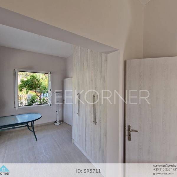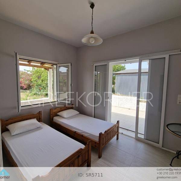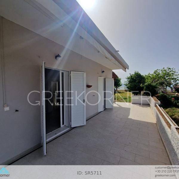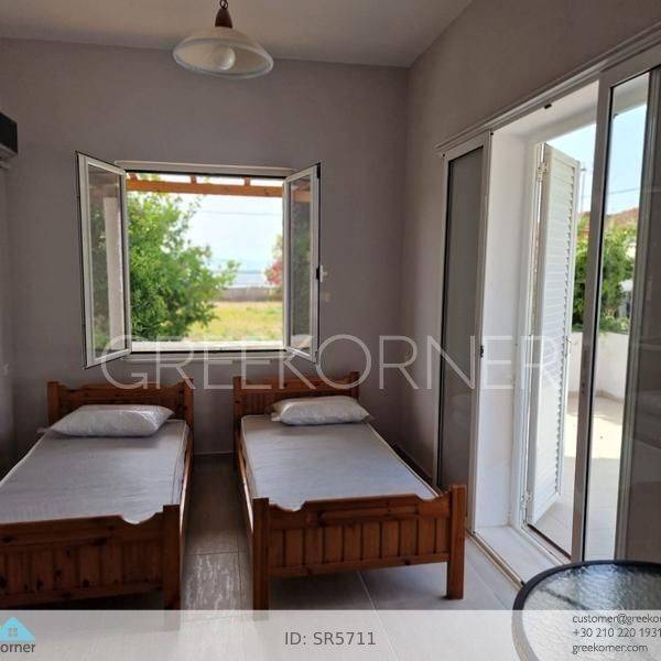 Pyrgos, Katakolo - Detached House 70sqm plot 372sqm, fully furnished, bedrooms 2, master bedroom, levels 1, excellent condition, year built 1995, renovation year 2024, energy class C, living room, kitchen, bathroom, heating type: autonomous (oil), air condition, parking open space,3+, quiet, dual aspect apartment, luminous, sea view, frontage, painted, electric roller shutters, storage space 5sqm, solar heater, balconies, large balconies, tents, garden, garden 300sqm, built in appliances, aluminum frames, double glazed windows, door screen, ceramic tiles floors, secure door, pets allowed, residential zone, sea front (1st row), access from asphalt, close to market (up to 5000m), close to sea (up to 50m).