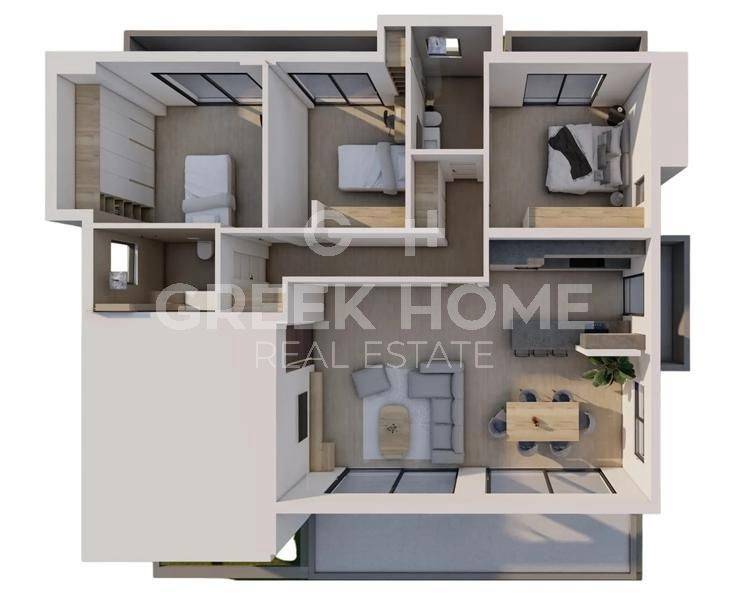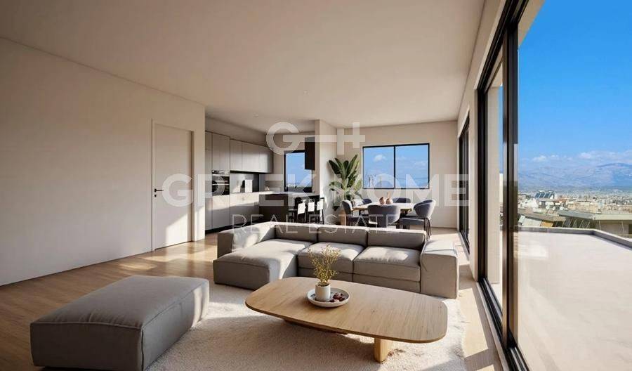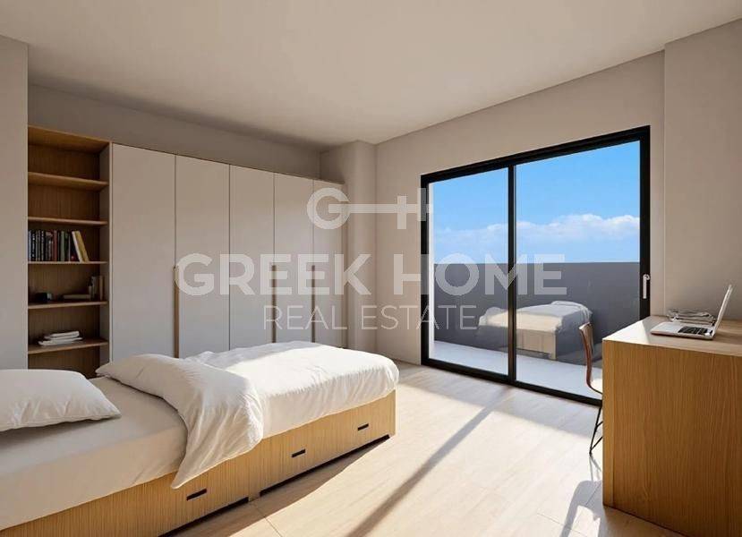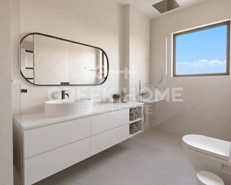 Holargos, Ano Cholargos - Floor Apartment 121sqm bedrooms 3, 5th, under construction, year built 2025, energy class A+, living room, kitchen, 2 bathrooms, heating type: individual unit (heat pump), parking covered, quiet, dual aspect apartment, luminous, unobstructed view view, frontage, electric roller shutters, storage space 6sqm, external thermal insulation, fireplace, balconies, large balconies, elevator, thermal shut-off frames, double glazed windows, door screen, wood floors, handicap ramp, secure door, video doorbell, luxurious, under floor heating, solar panels, eastern orientation, close to metro/train (up to 1000m).