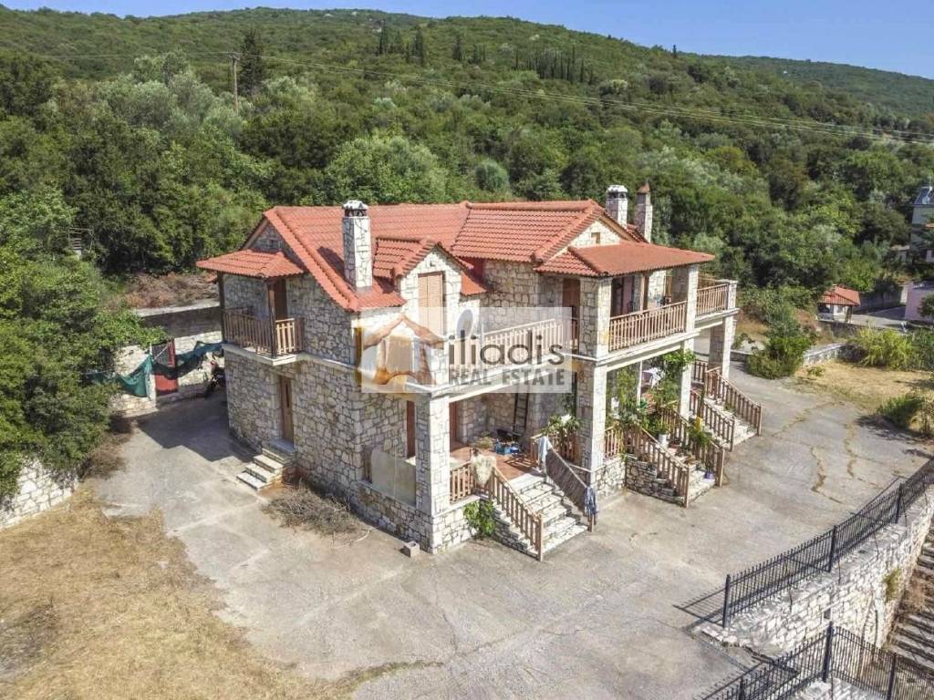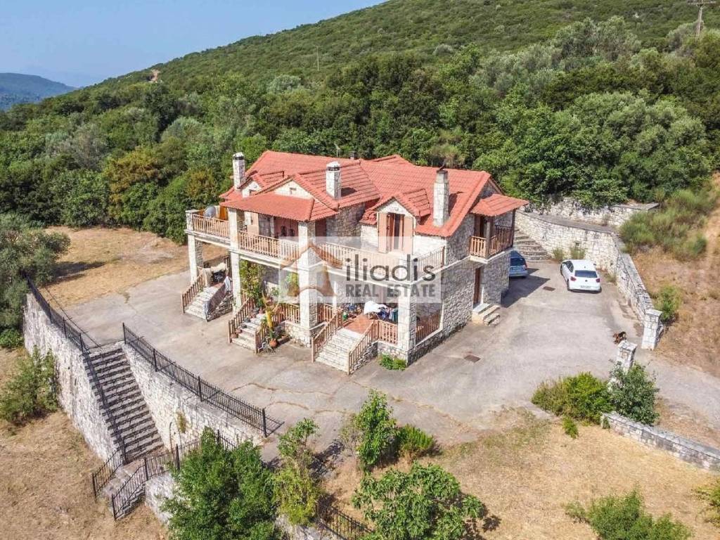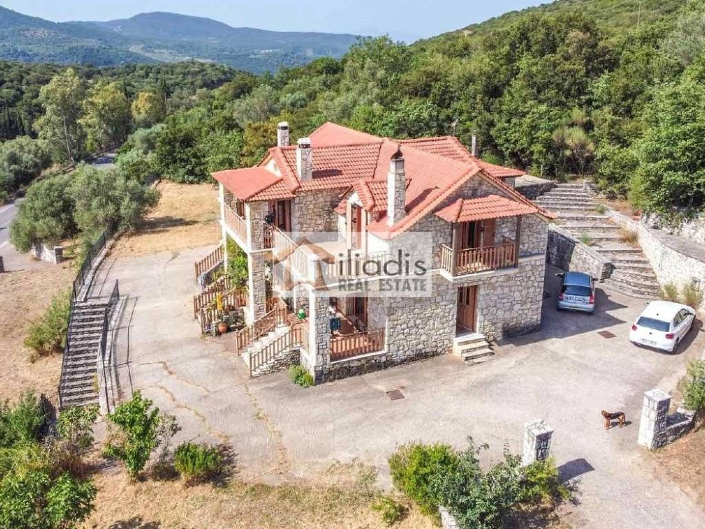 Tropea, Stavrodromi - Detached House 270sqm plot 2845sqm, bedrooms 3, levels 2, very good condition, year built 2004, energy class D, 3 living rooms, 3 kitchens, 6 bathrooms, heating type: autonomous (oil), parking, quiet, dual aspect apartment, luminous, panoramic view, storage space, fireplace, balconies, large balconies, balcony 60sqm, garden, garden 2500sqm, aluminum frames, door screen, ceramic tiles floors, office, without common charges, secure door, internal staircase, satellite, pets allowed, residential zone, south-eastern orientation, access from asphalt, investment property. In Arcadia and the picturesque settlement of Stavrodromi, in the lush mountainous terrain of the Municipality of Tropaia, a traditional, stone-built and in excellent condition detached house with a total area of 270 sq m is for sale. It is located within an elevated sloping plot of land, with an area of 2,845 sq m. delimited by stone walls and solid metal railings, which adjoins and has an unlimited view of the forested mountain in a quiet, safe spot that offers privacy. The detached house has the peculiarity of consisting of three independent maisonettes in contact with each other. Each maisonette consists of two levels. The ground floor contains a spacious living room with fireplace, kitchen with built-in electrical appliances, bathroom with shower and direct access to the courtyard. An internal staircase leads to the 1st floor, which contains a comfortable bedroom and bathroom. It also has large balconies with panoramic views of the lush green landscape surrounding it and the center of the village. The large verandas and many openings provide light and air throughout the house. The house was built in 2004, has a southeast orientation and has autonomous heating with a central oil installation, aluminum frames, screens, tiled floors, a security door and a spacious landscaped parking area. In addition, it offers three warehouses, one of which functions as a machine room. It is located a short distance from the center of the village, approximately 13km from the famous traditional settlement of Lagadia, 30km from Dimitsana, 35km from the famous Vytina and 42km from the famous archaeological site of Olympia. It is an excellent choice as a holiday home combined with the possibility of operating as a tourist accommodation complex.