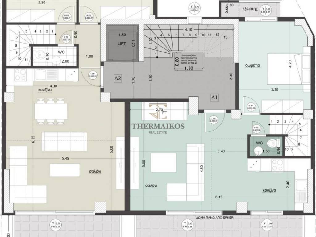 "Τούμπα - Κάτω Τούμπα". Πωλείται νεόδμητη, Μεζονέτα, πρόσοψης 140 τ.μ. (Δ1 κάτοψη). -Πρόκειται για ένα διαμπερές φωτεινό ακίνητο. -Βρίσκεται στον 5ο-6ο όροφο της οικοδομής και διαθέτει ασανσέρ. -Το ακίνητο αποτελεί μια αξιόλογη επιλογή για οικογένεια και εργαζόμενους. -Πρόκειται για ένα υπό κατασκευή ακίνητο. Αποτελείται από 3 υπνοδωμάτια με ντουλάπες, σαλοκουζίνα 1 μπάνιο και 1 wc. -Επιπλέον διαθέτει βεράντα, θέση στάθμευσης και αποθήκη υπογείου. Στα εσωτερικά του στοιχεία αξίζει να σημειωθούν η εσωτερική σκάλα η πόρτα ασφαλείας, ο συναγερμός. Διαθέτει κουφώματα αλουμινίου με διπλά τζάμια. Τα δάπεδα είναι από πλακάκια. Διαθέτει αυτόνομη θέρμανση με φυσικό αέριο (ατομική). Η ενεργειακή του κλάση είναι A+. -Ο προσανατολισμός είναι νοτιοανατολικός. -Βρίσκεται σε απόσταση 1200μ. από τη θάλασσα, -Σε απόσταση 2000μ. από το κέντρο Βρίσκεται σε κεντρικό σημείο, φαρδύς δρόμος με ωραία ανοιχτωσιά, κοντά σε αγορά, σε στάση λεωφορείου και πάρκο. Με βάση τα χαρακτηριστικά του μπορεί να χαρακτηριστεί ως μια πολύ καλή επενδυτική επιλογή. Τιμή πώλησης: 515000€. Κωδικός ακινήτου: 10877 Για περισσότερα ακίνητα επισκεφθείτε την ιστοσελίδα μας http://www.thermaikosrealest.gr. Thermaikos Real Estate Κλεάνθους 39, Θεσσαλονίκη, Ελλάδα http://www.thermaikosrealest.gr info@thermaikosrealest.gr Τηλέφωνο: 2310900700 Κινητό: 6907219389, 6956139149 ΥΠΕΥΘΥΝΟΣ ΑΚΙΝΗΤΟΥ: ΣΑΛΒΑΡΗΣ ΓΙΩΡΓΟΣ Προσοχή! Για την υπόδειξη του ακινήτου είναι απαραίτητη η υπόδειξη της αστυνομικής ταυτότητας και του Α.Φ.Μ. σας σύμφωνα με τον Ν.4072/11-4-2012 ΦΕΚ 86 Α.