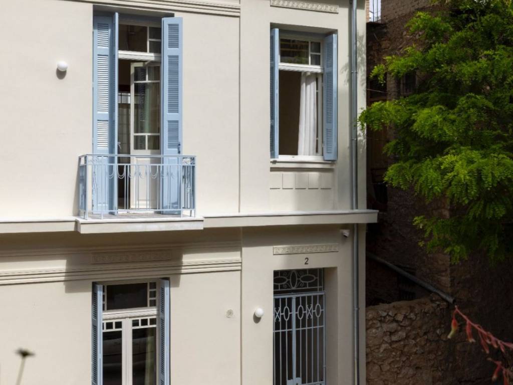 This is a listed building comprising two independent residences of 105 m² and 90 m² respectively, located on a quiet side street in Kolonos, just a 6-minute walk from the Red Line Metro station, with a supermarket within 50 meters. It is also a 15-minute walk from the new art museum at the Kapnergostasio complex and 12 minutes from Plato’s Academy Park, where the new Archaeological Museum is planned. The elevated ground-floor residence consists of two bedrooms, two full bathrooms, an open-plan living–dining–kitchen area, and a 15 m² internal courtyard. The first-floor residence includes one bedroom with en-suite bathroom, an open-plan living and dining area, a separate kitchen, and a guest WC. It also features two terraces with a total area of 30 m², as well as two small balconies facing the street. All built-in appliances have been installed (refrigerator, oven, cooktop), and each residence is equipped with its own solar water heater. A ducted, hotel-type air-conditioning system has been installed, while infrastructure for fiber-optic internet has been fully provisioned with all cabling concealed. The property is equipped with a security alarm system and cameras, as well as pre-installation for an electric vehicle charging station. The interior doors are wooden and 3 meters high, while the clear ceiling height reaches 3.80 meters. In the upper-floor residence, the height reaches 5.5 meters, with the roof beams left exposed. The wooden exterior window frames feature double glazing and full thermal break insulation. The property underwent a complete renovation in 2025, designed by the award-winning architectural firm Theo Poulakos Studio, under the supervision of architect Theo Poulakos and civil engineer Manos Botsaris. The building has received the Gold Architecture Award at GRAIL 2026 as Building of the Year, has participated in Open House Athens, and has been featured in leading architectural magazines.