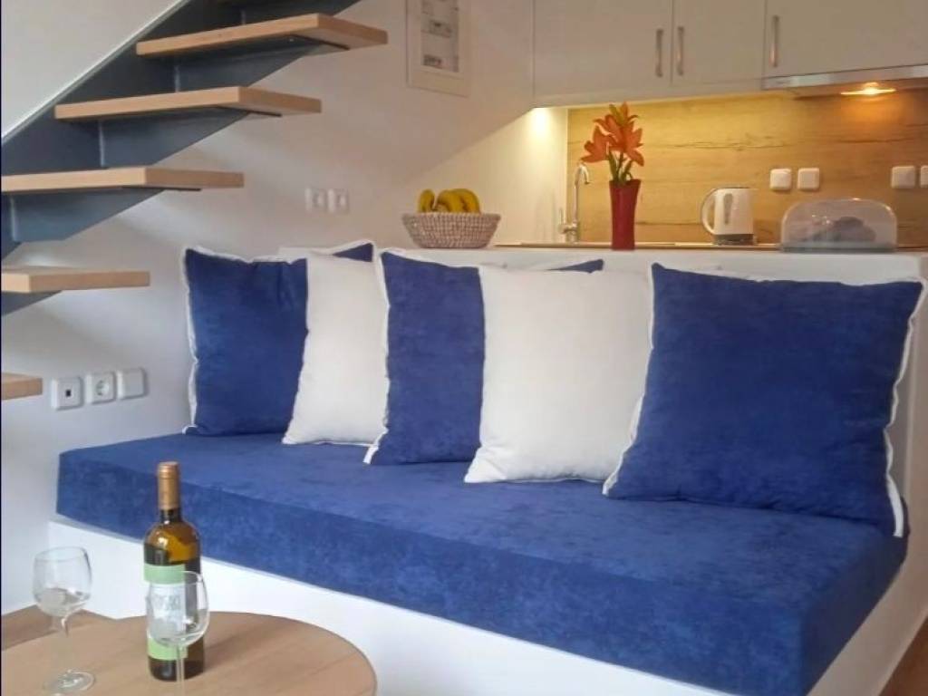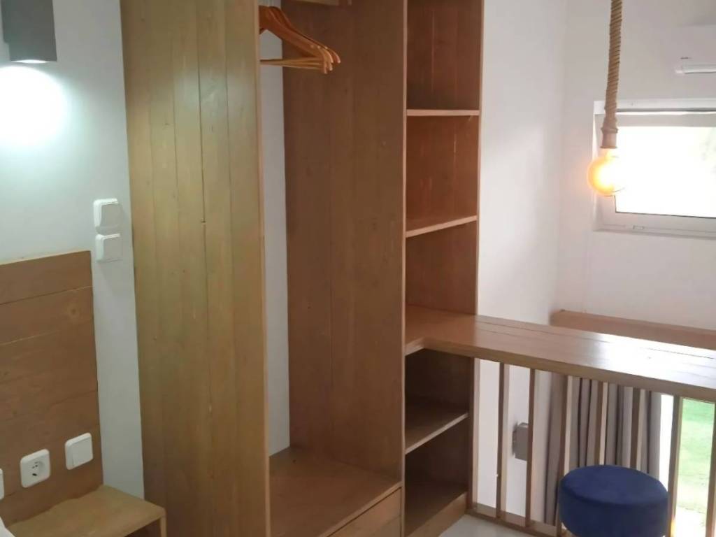 Newly built and tastefully designed 30 sq.m. studio in a quiet neighborhood. On the ground floor, there is an open-plan living room and kitchen separated by a counter, as well as a bathroom. In the spacious loft, accessible by a comfortable staircase, you will find the bedroom, along with an area that can be used as an office. It is fully furnished and equipped with electrical appliances, includes Wi-Fi, and shares a garden with lawn.