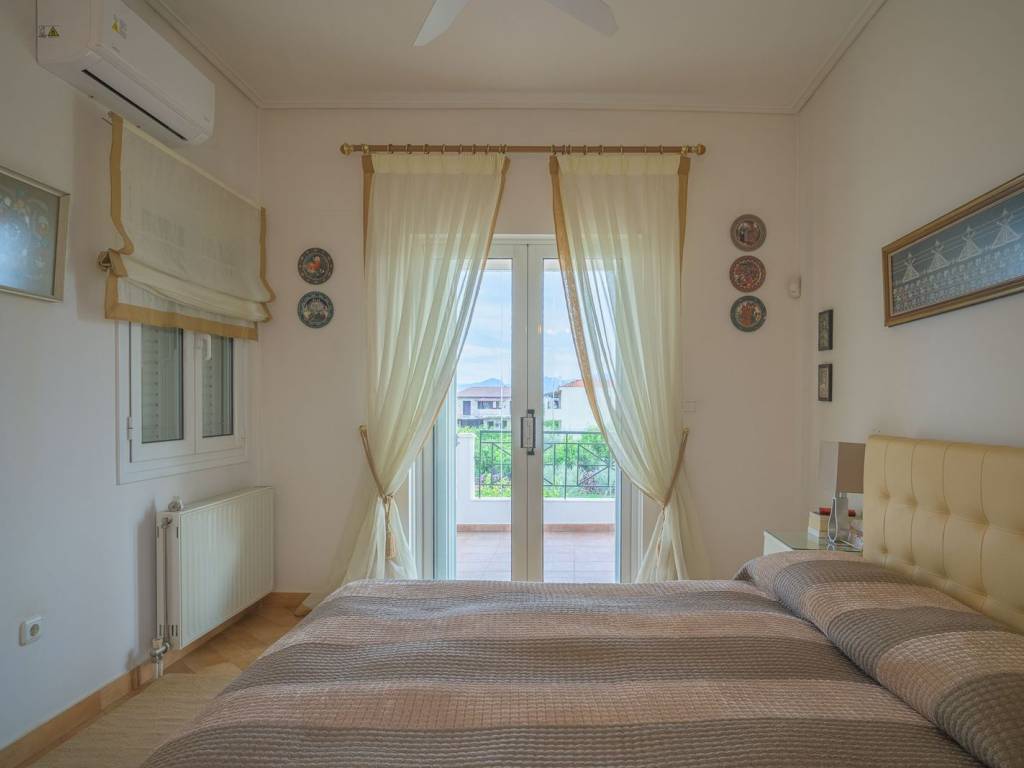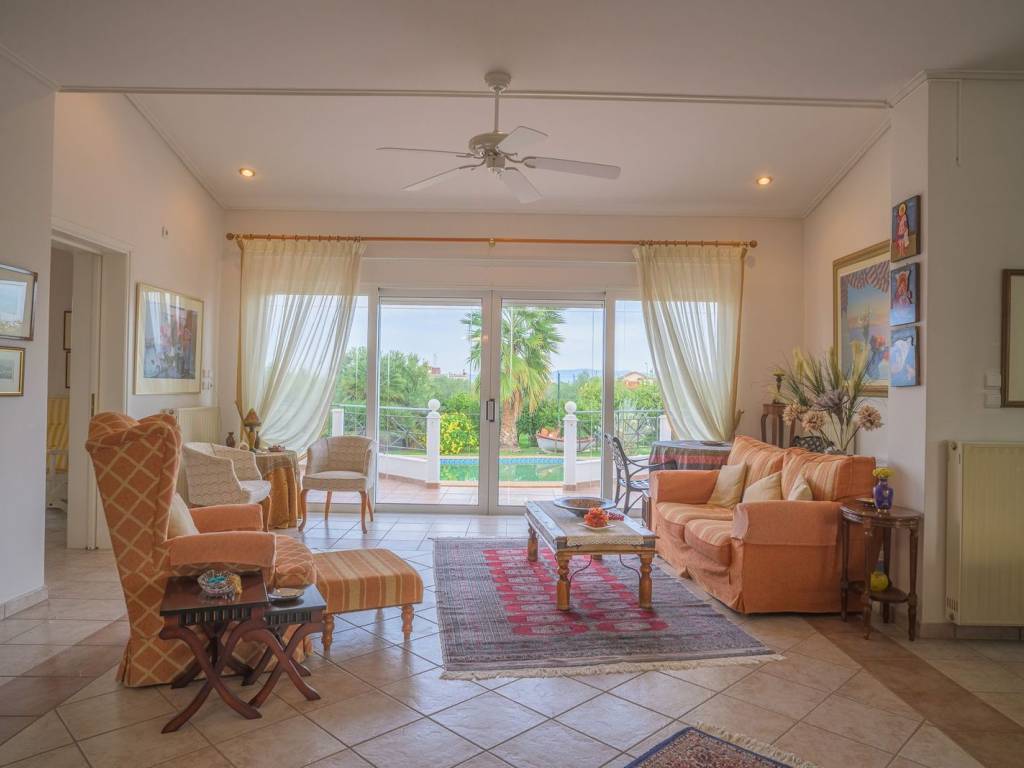 On a plot of 5,800 sq.m., in the quiet and lush Velo of Corinthia, just 1,800 meters from the sea, a luxurious villa with a total area of 380 sq.m., built in 1998, is available for sale. The residence combines privacy, comfort, and functionality, making it an ideal choice for both a permanent and a second home. The villa is spread over three levels and features six spacious bedrooms and six bathrooms, offering comfort and independence to every family member. One of the major advantages of the property is the interior elevator, ensuring easy access to all floors. The interior and exterior spaces are designed to offer a high quality of living. The outdoor area includes a large pool, BBQ, and outdoor bathrooms with showers. The surrounding area is filled with greenery, a lush garden, and many trees, including numerous olive trees. The residence is equipped with central heating and air conditioning. Additionally, there is a covered garage that offers safety and practicality. It is located in a quiet and well-maintained neighborhood, offering absolute privacy, while the short distance from the sea makes the villa ideal for those who wish to combine the tranquility of nature with direct access to the beautiful beaches of the area. This is a high-standard property that combines comfort, luxury, and a unique location. Location: The prefecture of Corinthia is located in the northeastern Peloponnese. Unique Features: The prefecture has a variety of destinations ideal for summer and winter getaways. Corinthia is characterized for its rich diversity as it perfectly combines mountain, nature and sea escapes while it has a rich history and culture. A trademark of the prefecture of Corinth is the Corinth Canal, an impressive project that is navigated every year by more than 15,000 ships. Important cities of the prefecture are Corinth, Loutraki, Xylokastro, Agii Theodoroi and Kiato. Accessibility: Access to Corinthia is easy and can be done by car through the existing road network, and is only 84 km away from Athens and 132 km from Patras. Furthermore, long-distance buses provide regular services to most areas of the prefecture and there is a railway connection between the prefecture of Corinthia and Athens. Investment Opportunity: Greece is one of the most popular holiday destinations in the world, with the prefecture of Corinthia being in particularly high demand and becoming an increasingly attractive destination for investors in winter and summer.