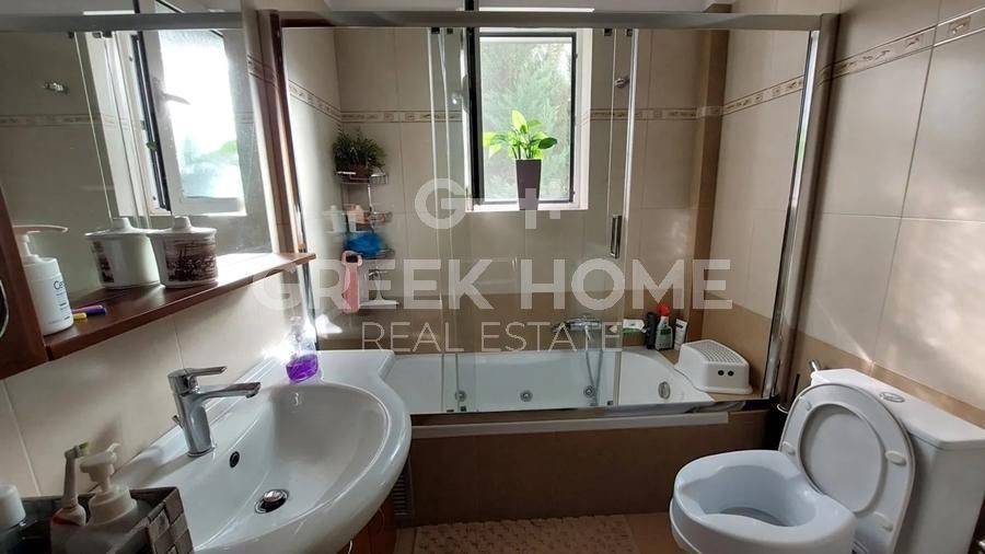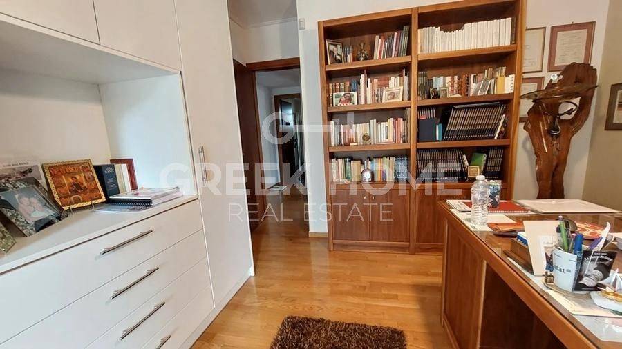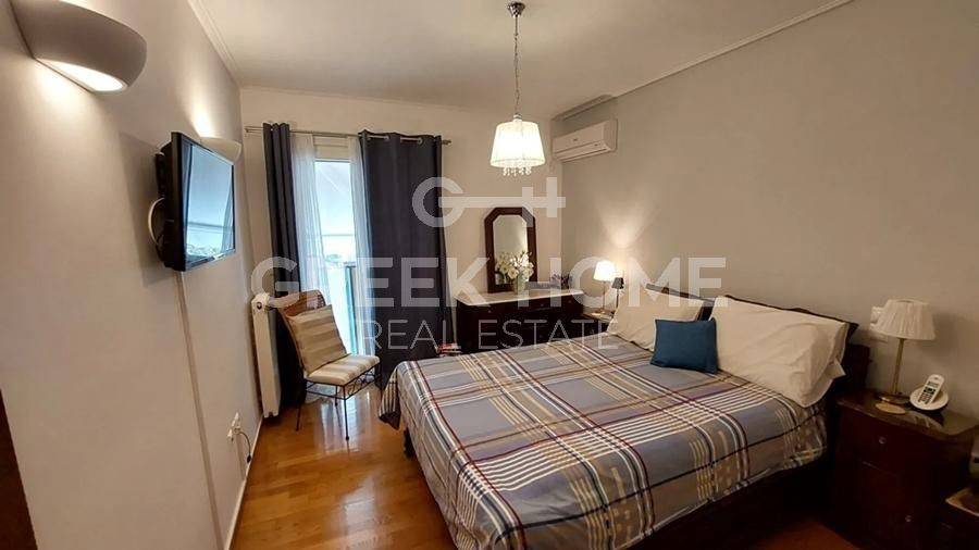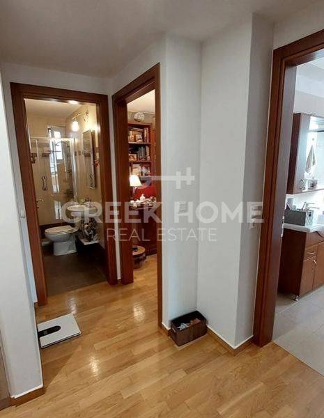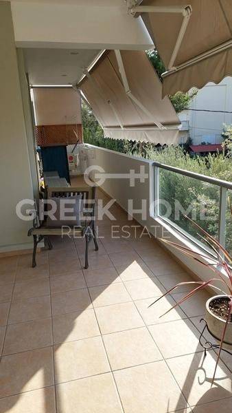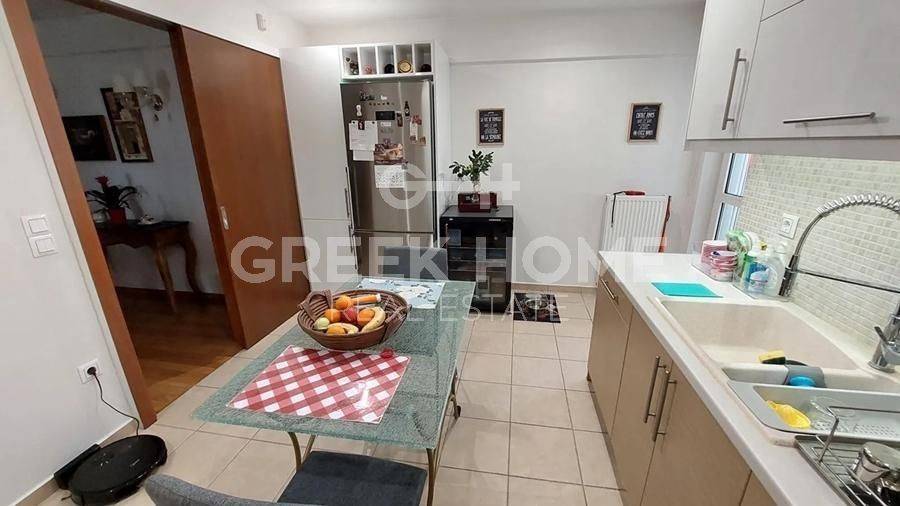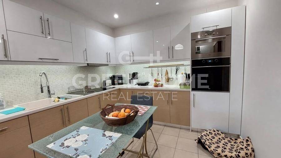 Nea Erythrea, Ethnikiston & Anapiron Polemou - Apartment 120sqm bedrooms 3, 2nd, renovated, year built 2014, renovation year 2019, energy class C, living room, kitchen, bathroom, wc, heating type: autonomous (natural gas), air condition, parking covered, quiet, luminous, unobstructed view view, frontage, storage space 13sqm, solar heater, fireplace, balconies, large balconies, tents, elevator, aluminum frames, double glazed windows, door screen, wood & tile floors, night electricity discount rate, secure door, alarm, video doorbell, pets allowed, close to square (up to 500m), close to bus stop (up to 100m), close to market (up to 200m).