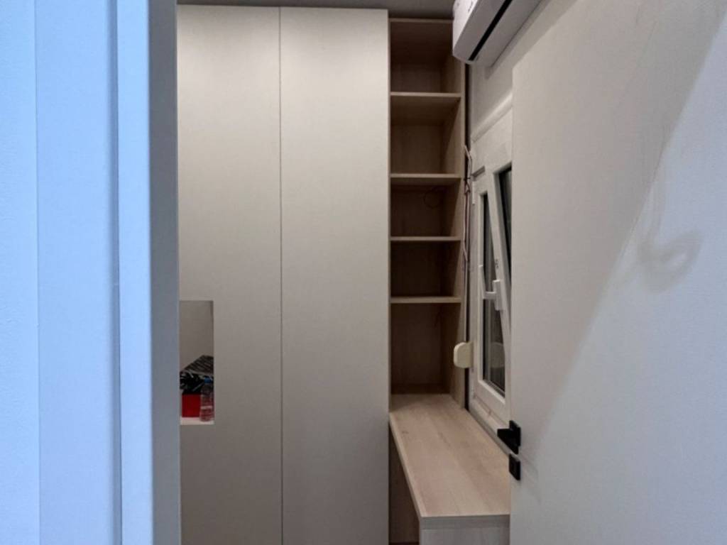 For rent furnished apartment with 2 bedrooms, kitchen and bathroom. Each room includes a double bed with storage space underneath, wardrobe, desk with bookcase, tv and A/C. Every room has a window for natural lighting and ventilation. In the kitchen there is a large refrigerator, with oven, hob and extractor as well as a dining table. The bathroom is modern and luxurious, including a shower, basin with built-in cistern and a washbasin with a modern mirror. In the bathroom there is a washing machine and hairdryer. It’s totally equipped with towels, sheets, duvets, kitchen utensils, etc. Additionally, there is an alarm system and a security door. The apartment is characterized by a modern design, designed by an experienced and well known interior designer of the city. The metro stop is 100 meters away and the bus stops are right outside the apartment. It is the ideal residence for two students.