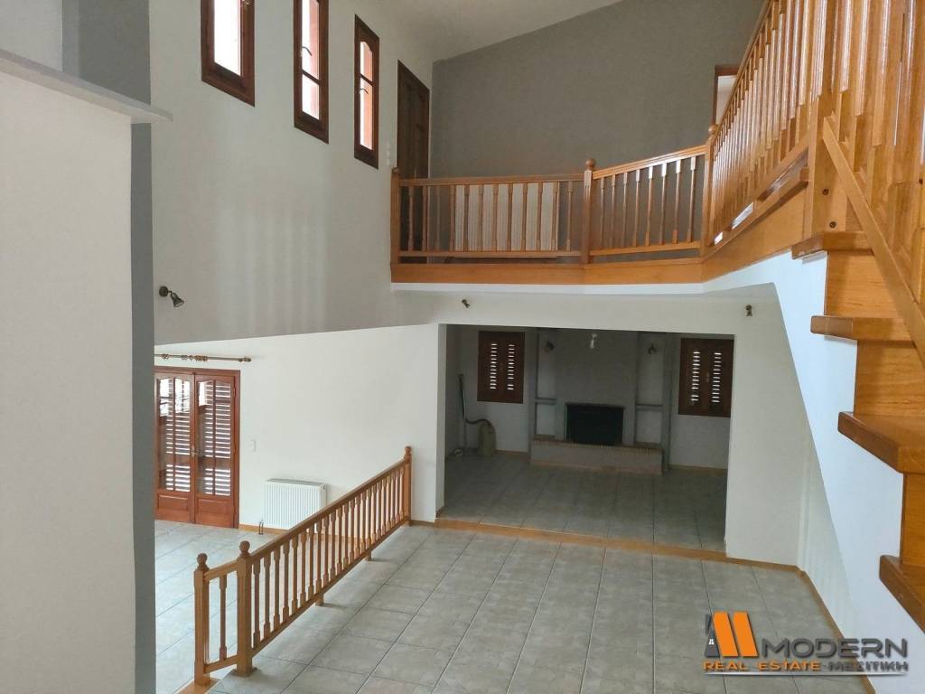 Single-family house for sale with a total area of 217.28 sq.m. It consists of three bedrooms, living-dining room, kitchen, office space and two bathrooms on two levels. It has autonomous heating, a fireplace, two closed parking spaces, a garden and balconies with unobstructed views. It also has a ground floor apartment of 96 sq.m. It is located within a plot of 1,899.40 sq.m., in Olympiada, Ioannina.