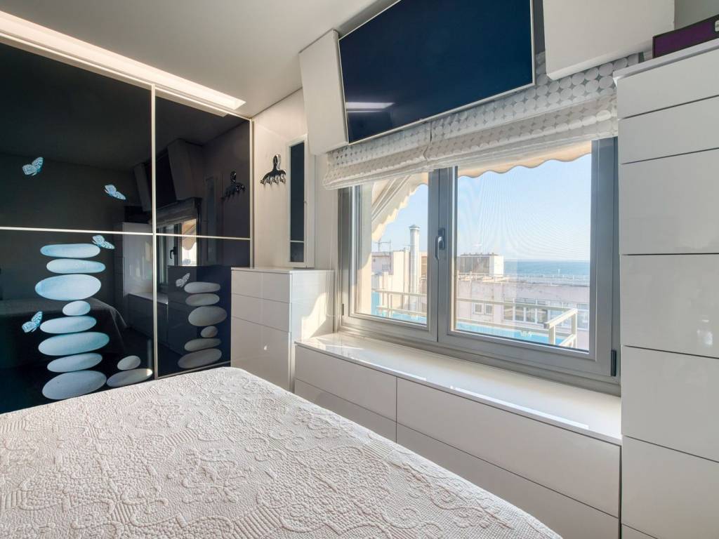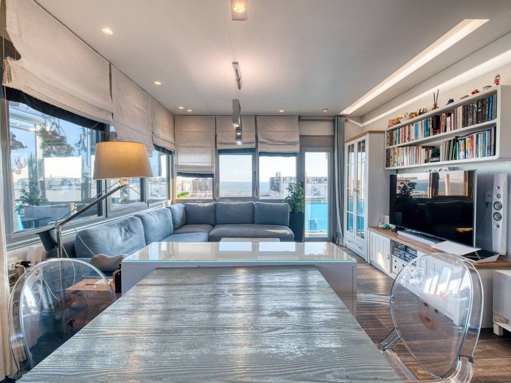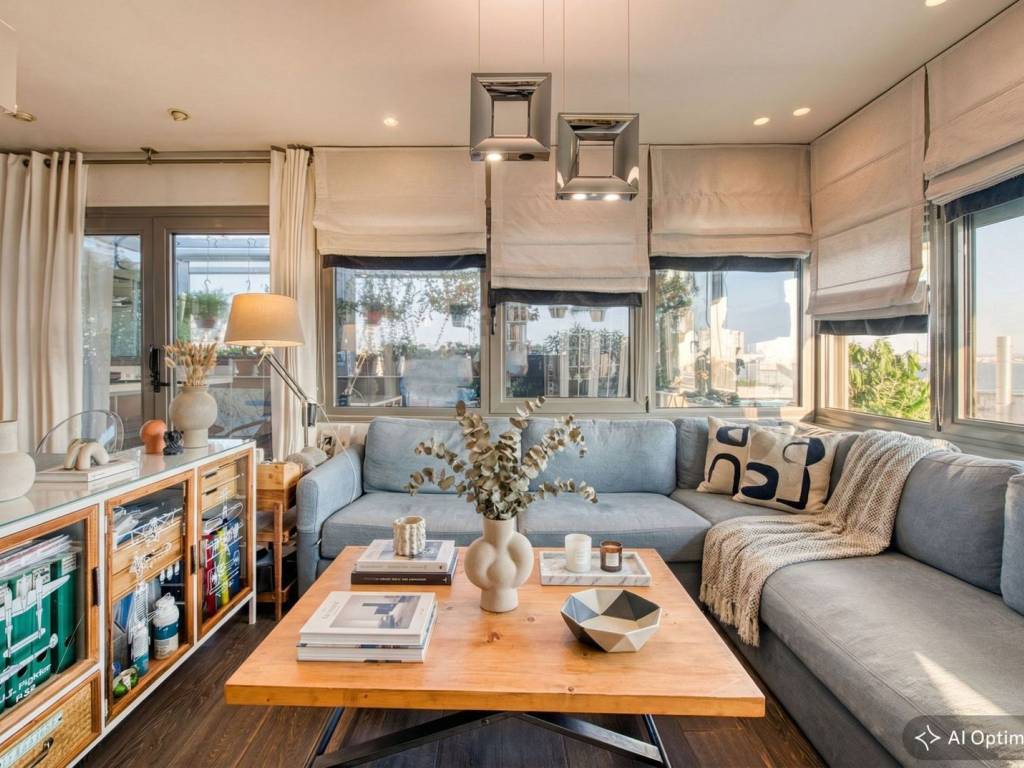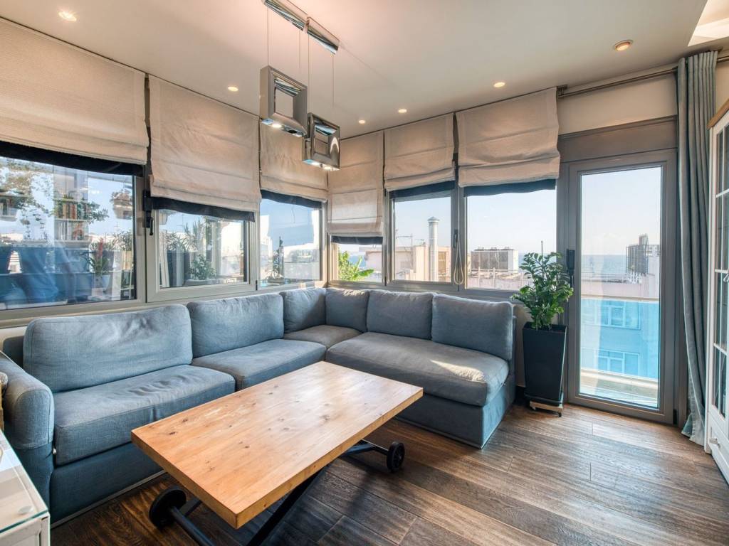 Penthouse with sea view and a panoramic view of the entire city of Thessaloniki, a city full of history. It extends over 57 sq.m of net area and a 60 sq.m terrace. Part of the terrace is arranged as a beautiful garden and gym area. The apartment combines luxury with comfort and is the epitome of elegance and functionality. Entering the interior, you will discover a world of high aesthetics, where every detail has been carefully designed. The solid, single-plank smoked oak floors provide a sense of timeless luxury, while the built-in kitchens and wardrobes offer practicality and style. Bathroom with Bisazza mosaic (gold leaf), Corian shower, Philippe Starck sanitary ware and accessories. Year of construction: 1972. Green indication after the 1978 earthquake. The apartment is fully furnished with fixed furniture and high-value electrical appliances, ensuring comfort and elegance in every corner. It features a terrace, ideal for enjoying your morning coffee with a view of the entire city. Security is ensured with a security door, offering peace of mind and protection. Central heating with natural gas ensures warmth and comfort throughout the year. The Old Waterfront Promenade offers visitors a breathtaking view. As you walk along it, you feel the breeze while the deep blue sea stretches before you like an endless carpet. It is not just a road, but a place filled with history, memories, and emotions. Every building, every square, every monument carries its own story, whispering secrets to passers-by. Begin your walk at Aristotelous Square, the heart of the city, and gaze at the imposing statue of Alexander the Great. Continue eastward, passing the White Tower, the symbol of Thessaloniki, and enjoy the panoramic view from its top. As you walk, you will come across picturesque cafés and restaurants, ideal for relaxing and enjoying a refreshing drink or a tasty meal overlooking the sea. It is perfect for a morning stroll, to enjoy the calm and the beauty of nature, or for a romantic evening walk, with the city lights reflecting on the sea.