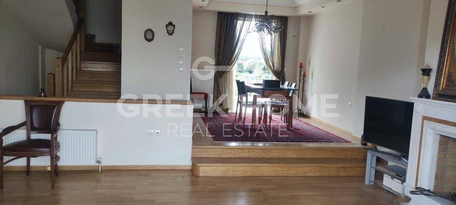Gerakas, Gargitos 2 - Tangent Maisonette 243sqm bedrooms 4, levels 3, ground floor - 1st - attic, excellent condition, year built 2000, energy class C, living room, kitchen, bathroom, wc, heating type: individual unit (oil), air condition, parking covered, quiet, dual aspect apartment, luminous, drop ceiling, electric roller shutters, storage space, solar heater, boiler, fireplace, balconies, large balconies, garden, built in appliances, aluminum frames, double glazed windows, door screen, wood & tile floors, separate kitchen, office, without common charges, secure door, alarm, video doorbell, luxurious, internal staircase, playroom, guest house, service room, internet, pets allowed, price is negotiable, close to πλατεία (up to 0), close to σχολείο (up to 0), close to super market (up to 0), close to αττική οδό (up to 0), close to αγορά (up to 0).