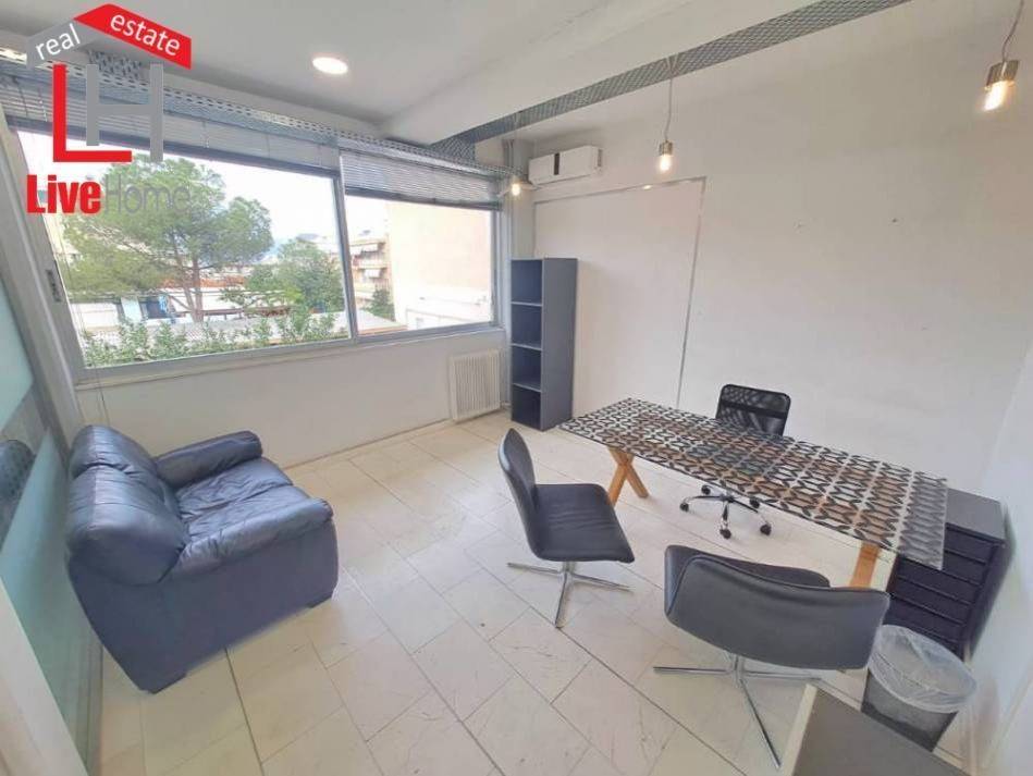 Kato Ilioupoli: Luxurious office for rent 20 sq.m. It is front-facing on the ground floor, with individual electric heating. It consists of 1 open space, with an additional shared waiting area-kitchen-WC. It is fully furnished (office, sofa, chairs), built in 1980 and has an open view, synthetic frames, security door, air conditioning, tiled floors. It is located 5 minutes from the Karea ring road, near Independence Square (Agia Marina).