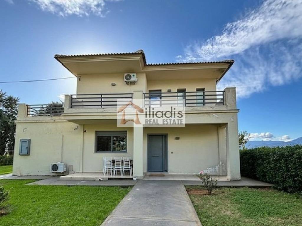 Nayplio - Detached House 173sqm plot 4053sqm, fully furnished, bedrooms 3, master bedroom, levels 2, excellent condition, year built 2007, energy class D, living room, hall, kitchen, bathroom, wc, heating type: individual unit (oil), air condition, parking open space,3+, quiet, dual aspect apartment, luminous, corner, unobstructed view view, storage space 9sqm, boiler, fireplace, large balconies, balcony 70sqm, garden, built in appliances, aluminum frames, double glazed windows, door screen, wood & tile floors, separate kitchen, without common charges, secure door, luxurious, internal staircase, pets allowed, residential zone, south-eastern orientation, access from asphalt. In the lush Argolic plain, surrounded by orange groves and a short distance from the city of Nafplio, a detached house with a total area of 173 sq.m. is for sale. This is an excellent construction consisting of two levels that communicate with each other by an internal staircase. The ground floor with an area of 84,5 sq.m. includes a spacious living room with fireplace and dining room with large bright openings and direct access to the courtyard, a bedroom, kitchen and wc with shower. The 1st floor with an area of 57 sq.m. includes two spacious bedrooms, one of which has a dressing room and an elegant bathroom. The entire level has access to particularly large verandas, from which there is visibility and an unobstructed view of the city of Nafplio and the castle of Palamidi, as well as the lush landscape that surrounds it. The large verandas and many openings provide light and air throughout the house. The house has aluminum frames with double glazing and screens, wooden and tiled floors, oak doors, functional built-in bedroom wardrobes, oil heating via individual burner and air conditioning units. It is located outside the plan and has exclusive use of vertical property of approximately 1.900 sq m, which is part of a larger plot of land with a total area of 4.053 sq m. The plot is fully demarcated and landscaped with ample parking space and the possibility of creating a swimming pool. It is an excellent choice for a permanent or holiday home as it is located in a quiet location, offering privacy. It is just 10 minutes from the city center of Nafplio and from the nearest organized beach of Arvanitia.