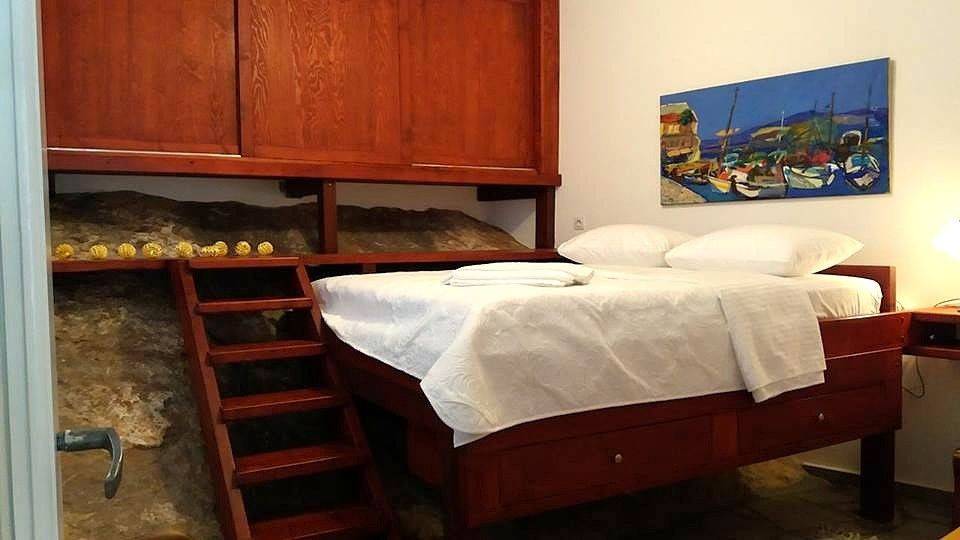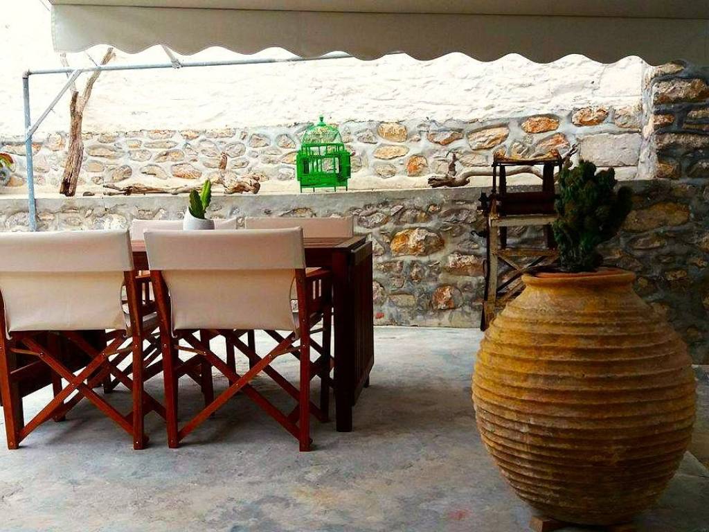 Two-storey stone-built (keresmbeni) traditional house, comprising a ground floor and first floor, with a total area of 265.85 sq.m., forming part of a larger four-storey traditional property, on a plot of 582.84 sq.m., in the center of Hydra. It is located 230 meters from the port, on Andrea Miaouli main street, in a straight line, without steps. The two-storey residence is completely independent and detached from the rest of the building. It has been arranged into three self-contained apartments: one ground-floor apartment of 99.40 sq.m. with two bedrooms, and two apartments on the first floor — one of 126.10 sq.m. with two bedrooms and another of 40.35 sq.m. with one bedroom. All units are equipped with kitchens and bathrooms. There is also the possibility to reconfigure the property in any way the owner wishes, as no horizontal property division has been established. The property has two entrances, two courtyards, two verandas, and one cistern. A distinctive feature is the natural rock foundation, which has been incorporated into the first-floor interior with concealed lighting, creating a unique aesthetic and atmosphere. The property has been renovated to a large extent, covering the most costly works. It is located within Zone ΙΓ, at the boundary with Zone Δ. All legal documentation and certificates are in place and ready for sale.