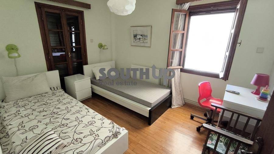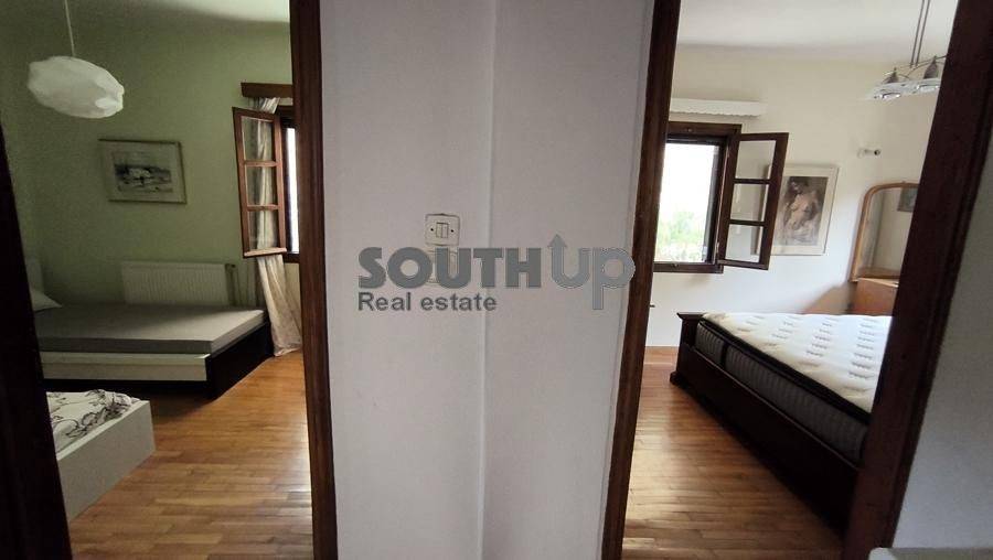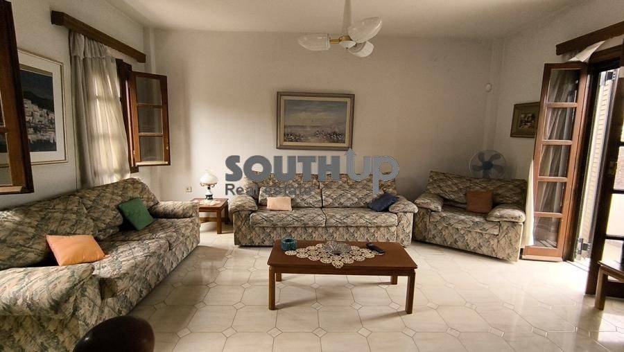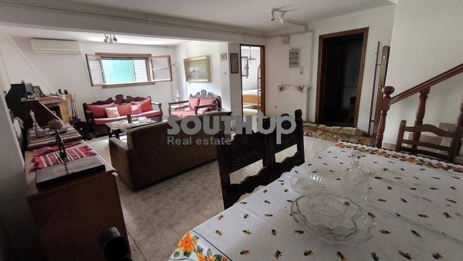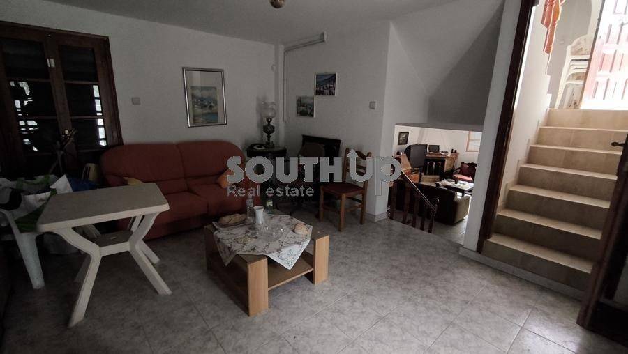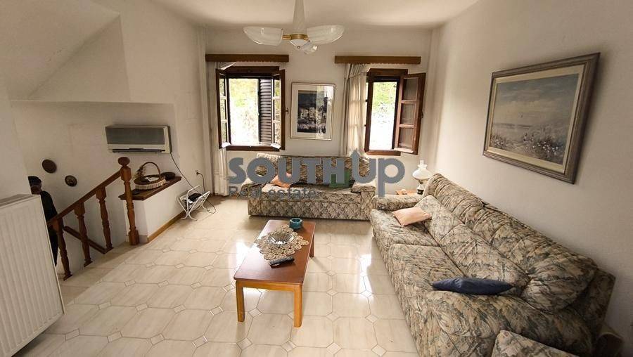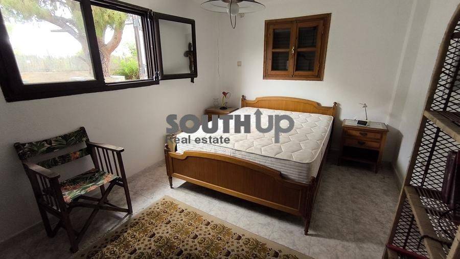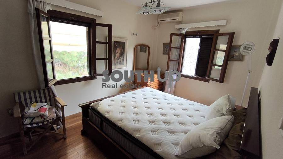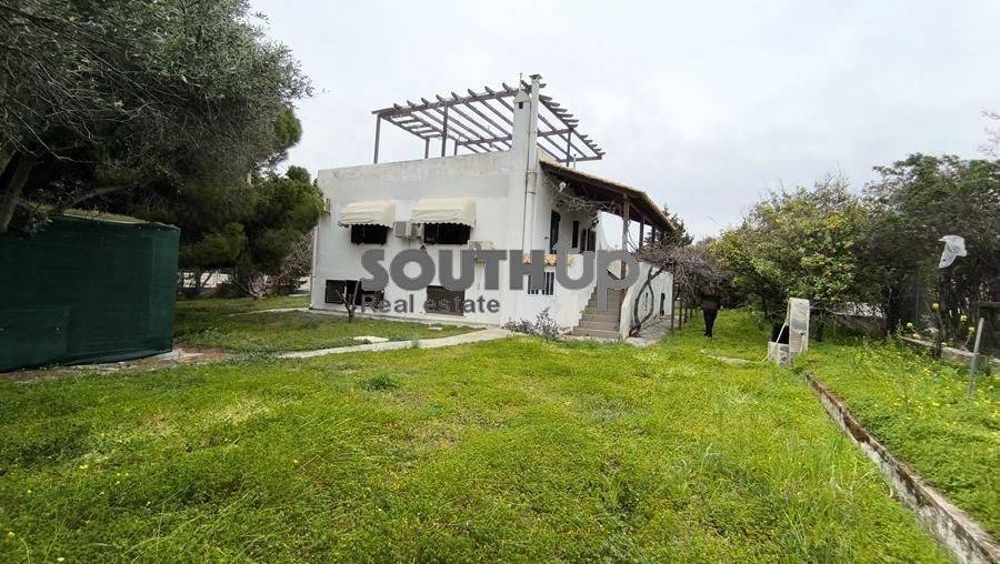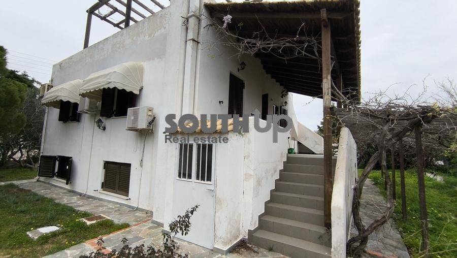Kalyvia Thorikou, Lagonisi - Detached House 220sqm plot 900sqm, fully furnished, bedrooms 4, levels 2, semi-basement (140sqm, 2 bedrooms, living room, dinning room, kitchen, bathroom, wc) - ground floor (80sqm, 2 bedrooms, living room, dinning room, kitchen, bathroom), very good condition, year built 1985, energy class F, 2 living rooms, 2 kitchens, 2 bathrooms, wc, heating type: autonomous (oil), air condition, parking open space,3+, quiet, dual aspect apartment, sea view, storage space, solar heater, boiler, fireplace, large balconies, tents, garden, garden 800sqm, private terrace, wooden frames, door screen, ceramic tiles floors, separate kitchen, night electricity discount rate, alarm, residential zone, south-western orientation, access from asphalt, close to market (up to 1000m), close to sea (up to 200m).