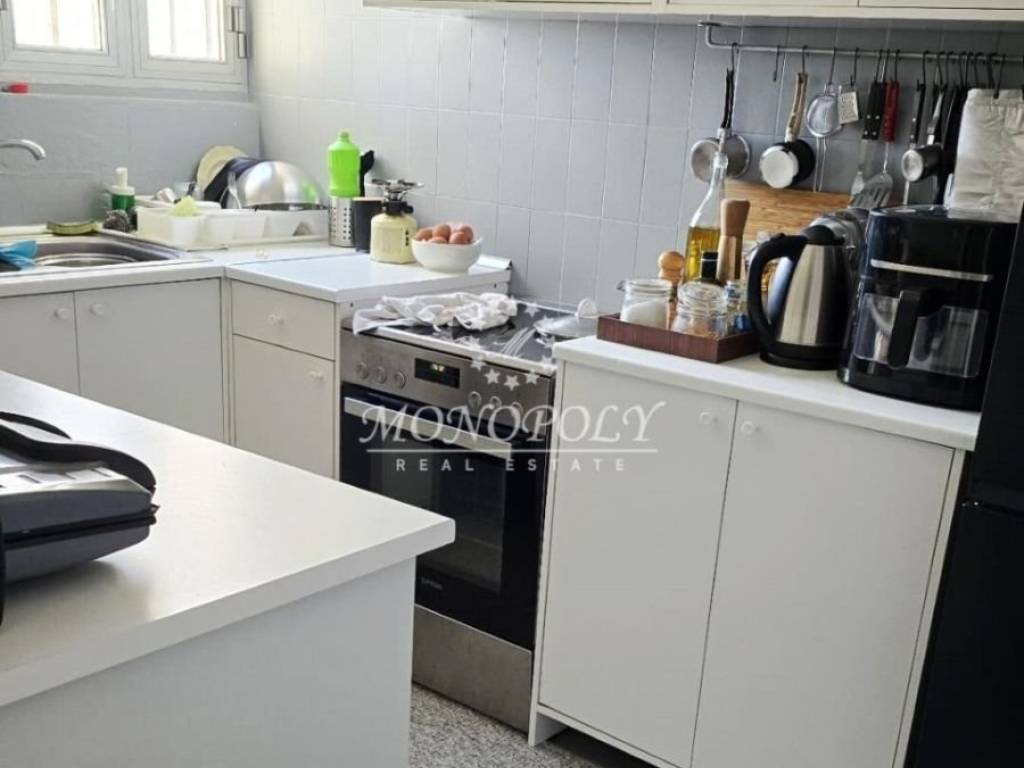Kallithea - Tzitzifies, near ISNF, is a 55sqm apartment for sale, on the 4th floor, penthouse, bright, built in 1982, with renovated bathroom & kitchen in 2015. It consists of a hall that can accommodate a work desk, a living room with mosaics, double balcony doors for proper lighting, and access to the balcony, with an open view and southeast orientation. From the hall with the new large gray tiles we go to the separate renovated kitchen, with a large bench, many cabinets and a window for natural lighting and ventilation. After that is the fully renovated bathroom with shower, window and storage space above, and finally the spacious bedroom, with room for a double bed, with wooden floors, 4 wardrobes, up and down, and a balcony door to the front balcony. It has central heating with petrol, security door and elevator. It is located in a very good location, close to main roads, bus and tram stops, schools, sports facilities and the Stavros Niarchos Foundation. *Property location on the map can be relevant and not accurate. *ID or Passport and TAX number are required for visiting the property, from each person that will be present.