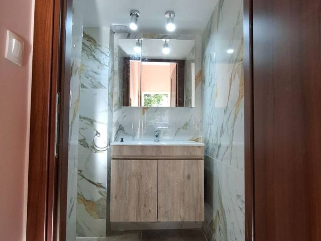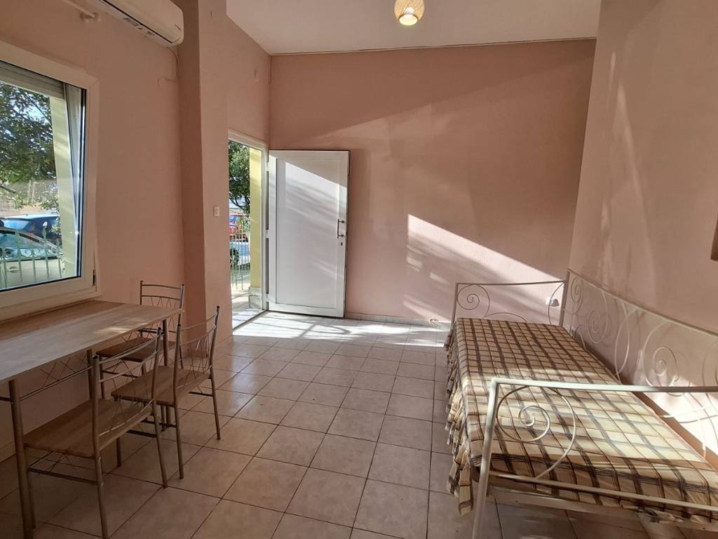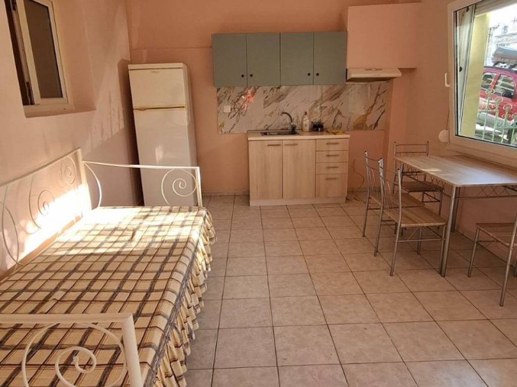 Semi-furnished, ground floor studio apartment for rent, 44.6 sq.m., built in 2005, RENOVATED in 11/2025. In a privately owned building with its own separate entrance. It is a two-room, sunny apartment consisting of 1 bedroom, living room-kitchen, bathroom, and storage room. It has air conditioning for heating and cooling, refrigerator, new dining table, and sofa. A bed frame can be added if desired. It has a security door, high-quality Kommerling double-glazed windows, a new electric water heater, a new loft with a smart mechanism, a new built-in large wardrobe, and internet and TV connections. There are no shared expenses. There is a small courtyard and a roller shutter. It is a 2-minute walk from the bus stop (towards the university) and 15 minutes from the center! Ideal for students and workers. The bathroom, electrical and plumbing have been renovated. For communication by phone or text message, call 6975747511 Ms. Katerina all day until 22:00. No real estate agents, please.