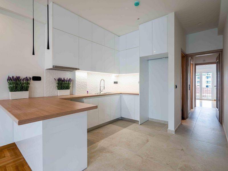 Fully renovated in October ’25, this apartment combines functionality with minimalist aesthetics, offering a bright and comfortable residence in Neos Kosmos. On the 3rd floor of a well-maintained ’69 apartment building with an elevator, this apartment features an open living room with dining area and an open-plan kitchen. It includes two bedrooms, one of which has a reception area - separated by French doors - equipped with built-in wardrobes, ideal for a walk-in closet. The apartment has a full bathroom and a guest WC, designed with high-quality materials and thoughtful details. Bright and full of light throughout the day, the apartment offers a view of an open street from the living room and an unobstructed view of the Acropolis from the rear balcony, a reminder that you are in the center of one of the most historic cities in the world. The apartment has autonomous natural gas heating, air conditioning, alarm and security door. Its location is strategic: steps from public transportation, next to five-star hotels and a few minutes from the most vibrant parts of Athens. An apartment that combines design, location and quality — an ideal choice for residence Neos Kosmos is ideally located between the centre of Athens and the sea, just 5 minutes away from Syntagma Square, the Acropolis, Plaka and from Flisvos Marina. An up-and-coming neighborhood, family-friendly neighbourhood it is preferred by the younger generation due to its proximity to Panteion University. Neos Kosmos is home to several 5 star hotels as well as businesses, due to its central location and easy access to public transportation and the city center. Two of Athens’ most dynamic cultural venues, The Onassis Cultural centre and the sprawling Stavros Niarchos Cultural Centre, home to the National Opera and the National Library is just 5 minutes away. Easy and regular access to the city centre by trams, buses and metro. The airport is 45 minutes away, Piraeus port is 20 minutes away. Neos Kosmos is an up-and-coming neighbourhood, enjoying a lot of interest from potential buyers and is likely to see an increase in its value.