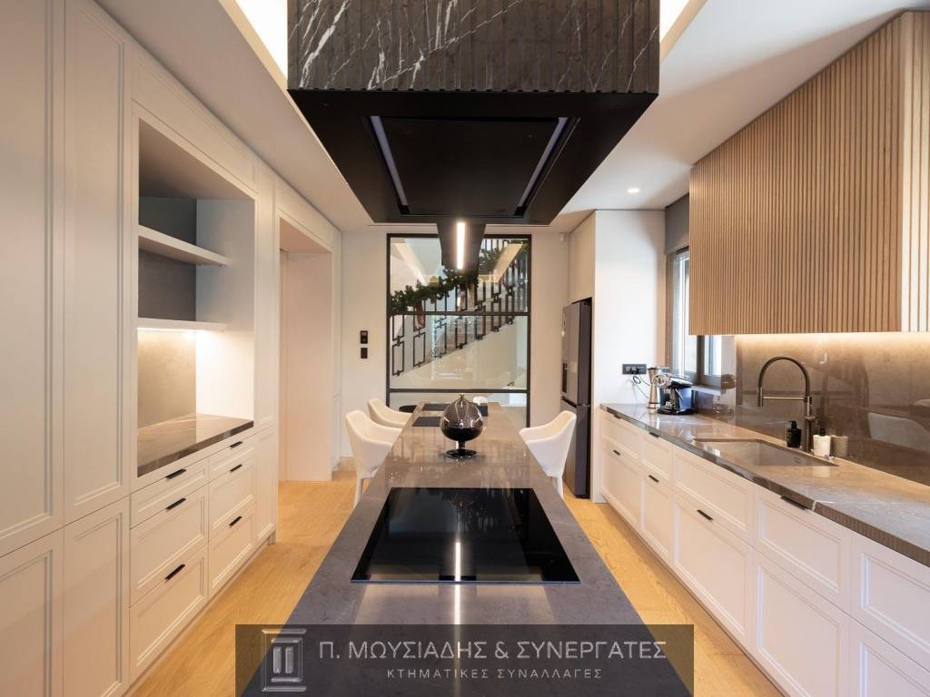 Παλαιό Ψυχικό, υπερπολυτελής νεόδμητη μονοκατοικία συνολικής επιφάνειας 1.100τμ, σε οικόπεδο 820τμ. Το ακίνητο περιβάλλεται από καλαίσθητο κήπο με γκαζόν, φύτευση, μεγάλη πισίνα και πανοραμική ανεμπόδιστη θέα. Κατοικία Α - 530τμ (Ισόγειο, 1ος, Υπόγειο) αποτελείται από εντυπωσιακούς χώρους υποδοχής σε open-plan διάταξη με τζάκι και επιβλητική εσωτερική σκάλα. Διαθέτει πλήρως εξοπλισμένη κουζίνα, 3 master υ/δ με πολυτελή en-suite μπάνια και dressing rooms, άνετο playroom, χώρο γυμναστηρίου, δωμάτια προσωπικού και πολλούς βοηθητικούς χώρους. Κατοικία Β - 180τμ (2ος & 3ος όροφος), περιλαμβάνει φωτεινό καθιστικό με τραπεζαρία, κουζίνα με πάσο, 2 master υ/δ, wc και μεγάλες βεράντες με ανοιχτή θέα. Επιπλέον διαθέτει, ενδοδαπέδια θέρμανση, Smart home σύστημα, 2 ανελκυστήρες, υπόγειο 400τμ, με αποθηκευτικούς χώρους, 6 κλειστές θέσεις στάθμευσης. Διατίθεται μερικώς επιπλωμένη με επώνυμα έπιπλα. Τιμή Ενοικίασης: 20.000€/μήνα Κωδ.: 12622