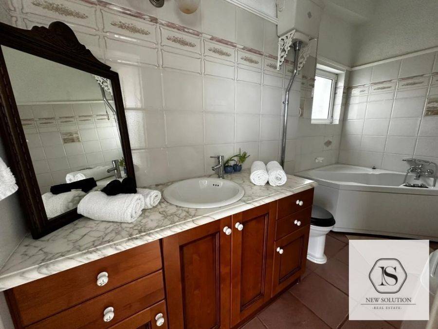Palaia Phokaia, Ikismos Aiolos, Detached house For Rent, 260 sq.m., Property Status: Amazing, Floor: Ground floor, 2 Level(s), 4 Bedrooms 2 Kitchen(s), 4 Bathroom(s), 1 WC, Heating: Autonomous - Electricity, View: Sea view, Energy Certificate: E, 2 parking(s), Floor type: Tiles, Type of door frames: Aluminum, Features: Security door, Security alarm, Storage room, Fireplace (2), Night stream, Electric Appliances, Internal Staircase, Double Glazed Windows, Balconies, BBQ, Pets Allowed, Furnished, Airy, Roadside, Bright, AirConditioning, Solar water system, Trees, Swimming pool, Back yard (Garden), Renovated, Price: 4.000€. NEW SOLUTION REAL ESTATE, Tel: (+30) 210 9680099-(6944848414), email: info@newsolution.gr