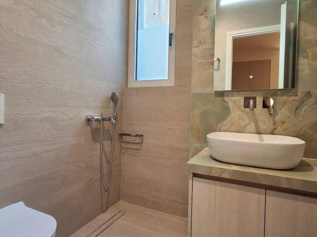 A luxury penthouse apartment of 93 sq.m., on the 6th floor of a well maintained building situated on the famous pedestrian street of Fokionos Negri. The apartment has just been thoroughly renovated, is bright and airy and includes a living area with a large terrace, an open-plan equipped kitchen, 2 bedrooms (one with an en-suite bathroom), an office space, 2 bathrooms, and a storage. It features beautiful oak floors, aluminum frames with double glazing, electric shutters and screens, external thermal insulation, heating and cooling with 3 inverter air conditioners, a solar water heater, and an alarm system. At the viewing of the property it is necessary to provide a form of identification (i.d or passport) accordingly to law 4072/2012.