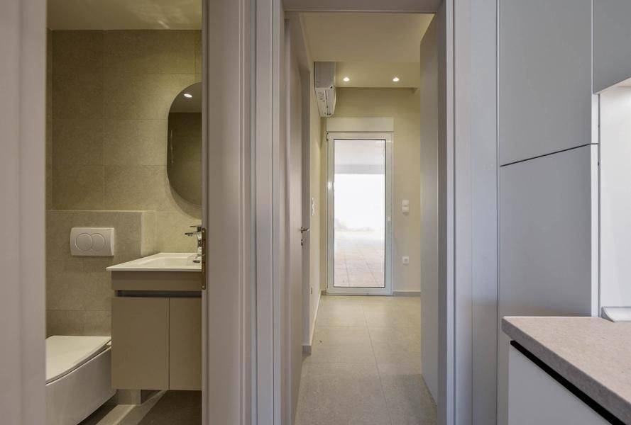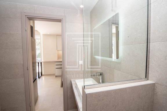 Stunning renovated transparent apartment with 13sqm balcony for sale in Nea Kalikikratia Halkidiki. Situated on the high ground floor, this 30sqm apartment seamlessly blends functionality with style. Enjoy effortless living in the open-plan kitchen (equipt with all electric appliences) and living area, perfectly complemented by a cozy bedroom and sleek bathroom. Every detail exudes luxury, from the high-quality aluminum frames to the exquisite granite floors. Relax in the serene atmosphere of this quiet neighborhood, just 5 minutes from the beach.