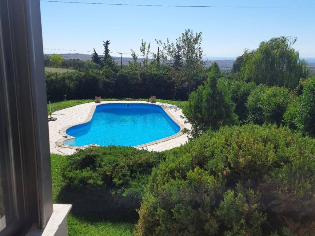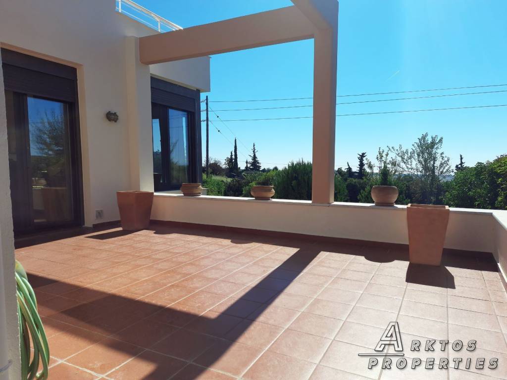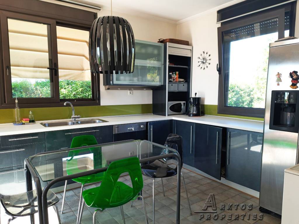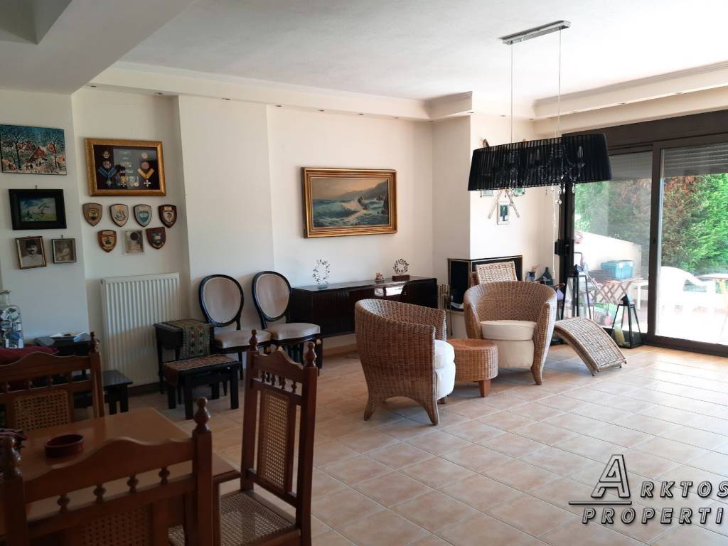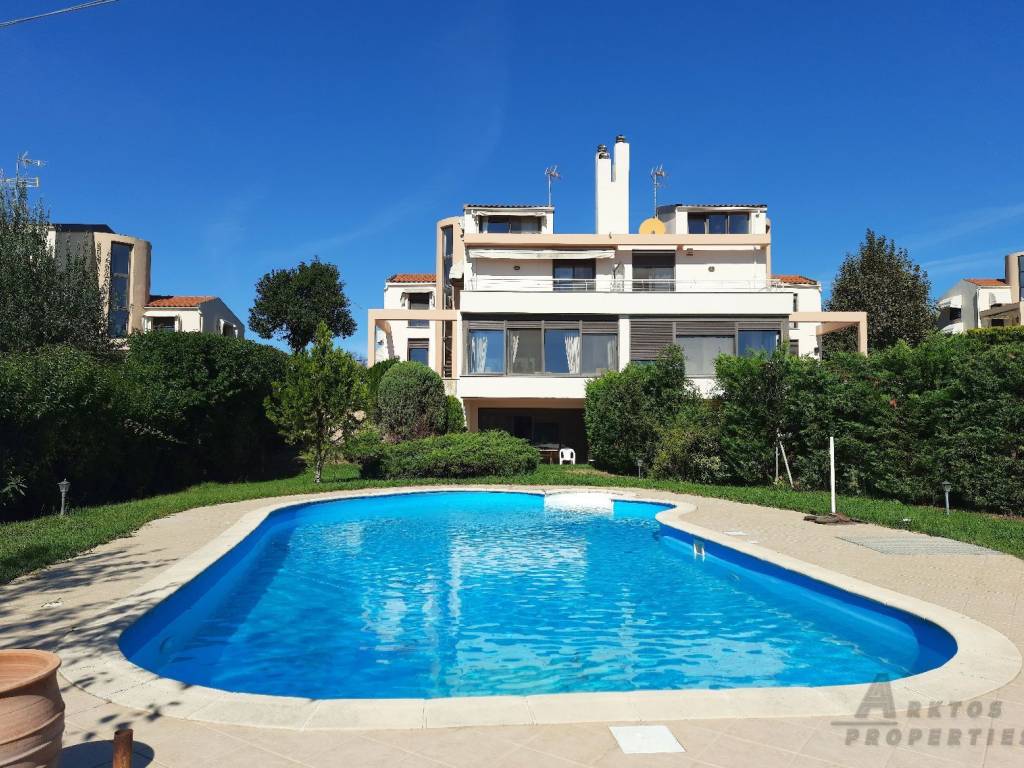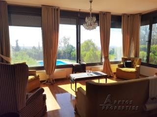 A luxurious maisonette for rent (UNFURNISHED), with a large yard and swimming pool, 2 private parking spaces (outdoor) and an exceptional view of both the mountains and the sea, located just outside Trilofos, Thessaloniki, in a rural area, specifically within a fenced complex of 8 residences with access from an asphalt road. The maisonette consists of a semi-basement/ground floor level that faces the back side of the property (south-facing with a view), an additional ground-floor level with entrance from the front side of the complex, a first floor, and an attic. There is an internal staircase connecting all floors, but the semi-basement/ground floor can also function as an independent apartment with its own entrance door. It is a through-light property, extremely bright with beautiful views from all floors. It features 5 bedrooms, 4 bathrooms, 2 kitchens, and 2 living rooms. It includes air conditioning, electrical appliances, individual heating with diesel, a garden water borehole, and an automatic sprinkler system. There are also balconies on all floors except the attic, as well as insect screens and awnings. The property is equipped with an alarm system. Property Code: TR1, The location pin on the map does not correspond to the exact position of the property. Contact Numbers: 6947304001 (Takis Atalla) 6939191183 (Maria Atalla) Arktos Properties, brokerage fee 2% + 24% VAT. For viewing the property, ID or Tax Number (A.F.M.) must be presented and recorded in the property viewing order.