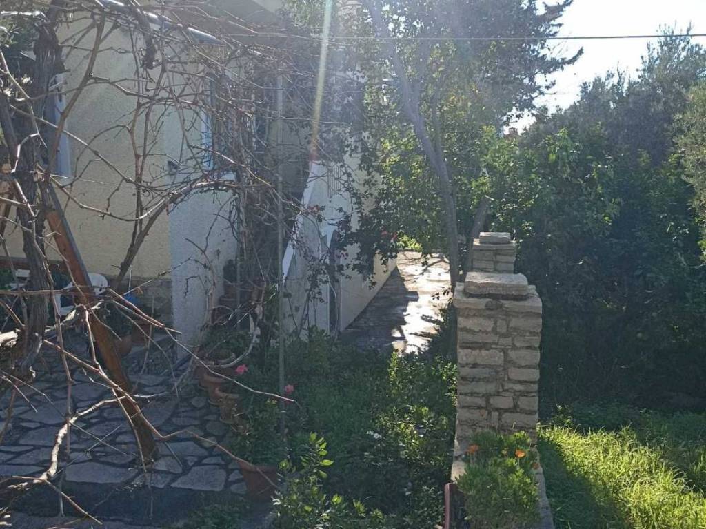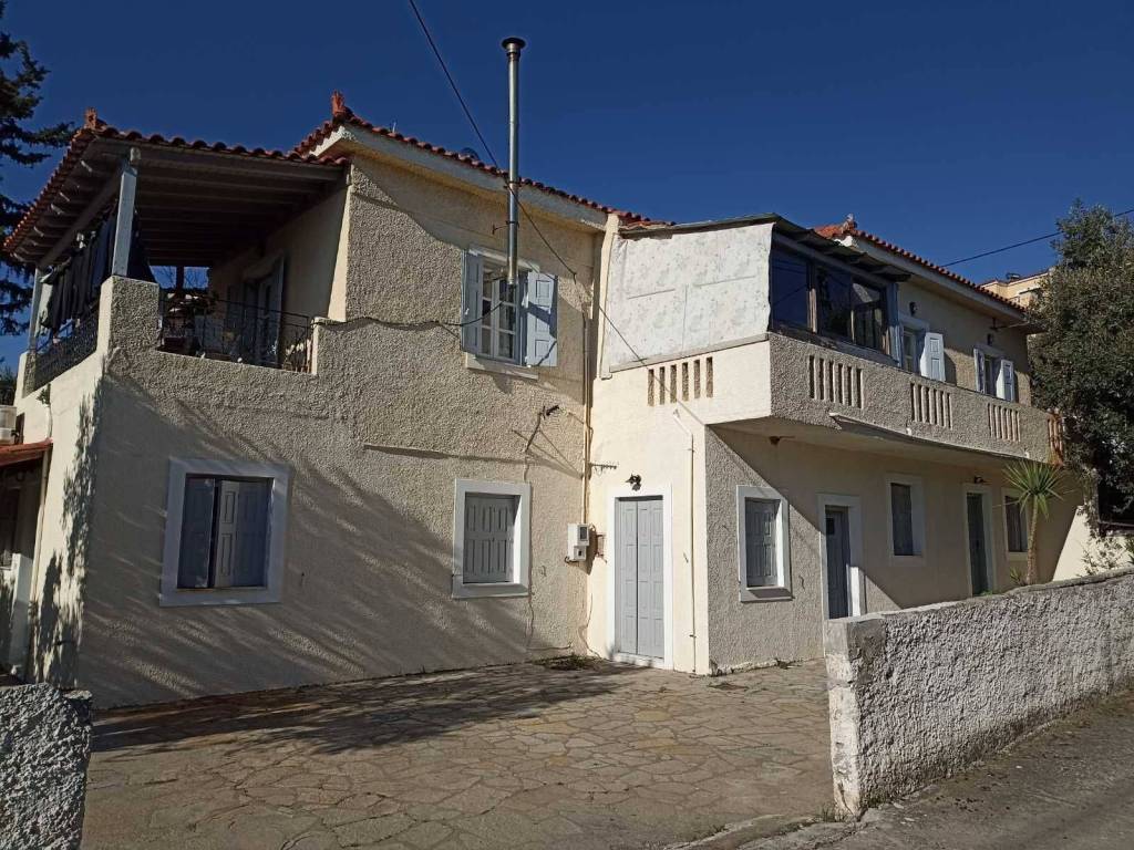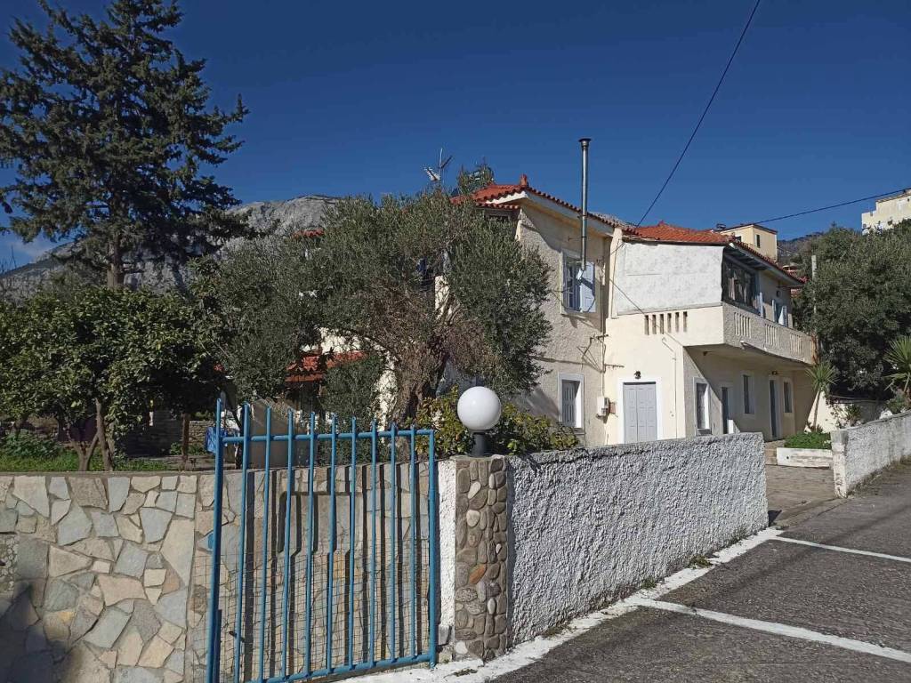 Two floor building- apartments On the first floor, there is an apartment of 125 sq.m. with 3 bedrooms, 2 bathrooms, a kitchen and living room, and three balconies. On the ground floor, there is a 55 sq.m. apartment with two bedrooms, a living room, one bathroom, and an outdoor yard. There are also three studio apartments, each 35 sq.m., with one bedroom, bathroom, kitchen, and living room, along with outdoor areas, parking, and a yard. Garden with trees. There are 5 parking spaces in total. It is located 250 meters from the sea.