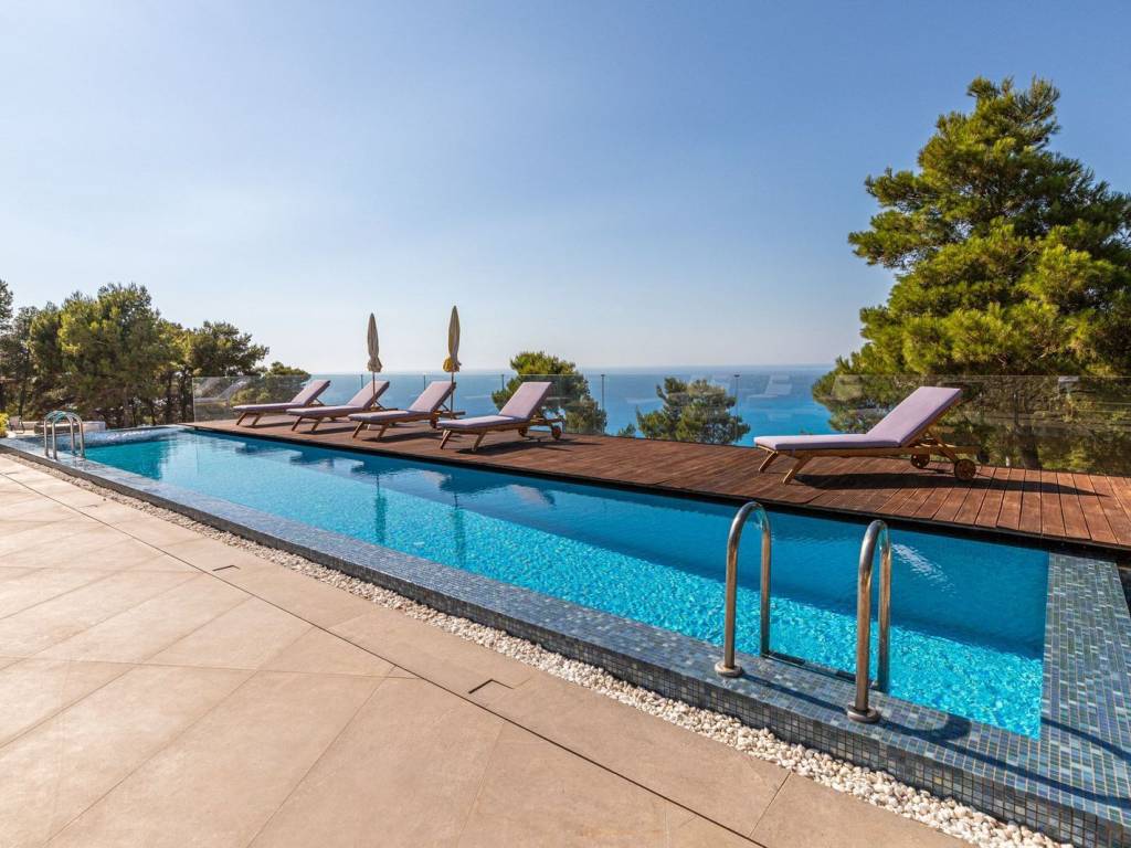 Introducing a once-in-a-lifetime opportunity to own a truly exceptional beachfront estate in the heart of Lefkada — a 287 m² masterpiece of modern luxury set within 1,500 m² of landscaped coastal beauty. Ideally located just minutes from the world-famous beaches of Porto Katsiki and Egremni, this five-bedroom, six-bathroom residence is more than a home — it’s an immersive lifestyle experience that blends architectural sophistication with the island’s untamed natural charm. Built in 2021 , the villa offers seamless indoor-outdoor living with expansive sea-facing terraces that frame panoramic views of the Ionian Sea and surrounding mountains. The open-plan interior is bathed in natural light and finished with rich wooden floors, sleek concrete tiles, and bespoke furnishings that exude elegance and comfort. Each of the five bedrooms is a luxurious en-suite master suite, while a stylish guest WC adds practicality. Designed for both indulgent relaxation and refined entertaining, the outdoor areas are nothing short of spectacular. Two heated swimming pools — including a breathtaking infinity pool — appear to blend effortlessly into the horizon. A fully equipped outdoor kitchen invites al fresco dining, while thoughtfully curated amenities such as a private basketball court, whimsical treehouse, and trampoline create a joyful setting for families and guests alike. A private walking trail leads directly to a secluded beach cove, perfect for spontaneous swims and sunset escapes. The home is offered fully furnished and move-in ready, complete with premium appliances, a designer kitchen, and a separate laundry cabin. Comfort is guaranteed year-round with a cutting-edge VRF air-conditioning system, energy-efficient pool heating pumps, and a powerful backup generator. Security and peace of mind are ensured with an advanced alarm system and reinforced safety door. Whether envisioned as a serene private retreat, an elite holiday residence, or a premium investment opportunity, this Lefkada estate delivers unparalleled value and lasting beauty. Luxurious. Secure. Unforgettable. This is your private sanctuary on the Ionian coast — where contemporary elegance meets timeless island serenity. Lefkada is one of the few Greek islands accessible by car, enhancing both accessibility and demand. Known for its stunning beaches and growing tourism sector, it attracts buyers seeking holiday homes, boutique hotels, and premium land plots. The real estate market offers a range of opportunities, from renovating traditional houses to developing luxury villas with high rental yields. Its strategic location places it near Preveza, Paxos, and Kefalonia, making it a valuable hub in the Ionian region.