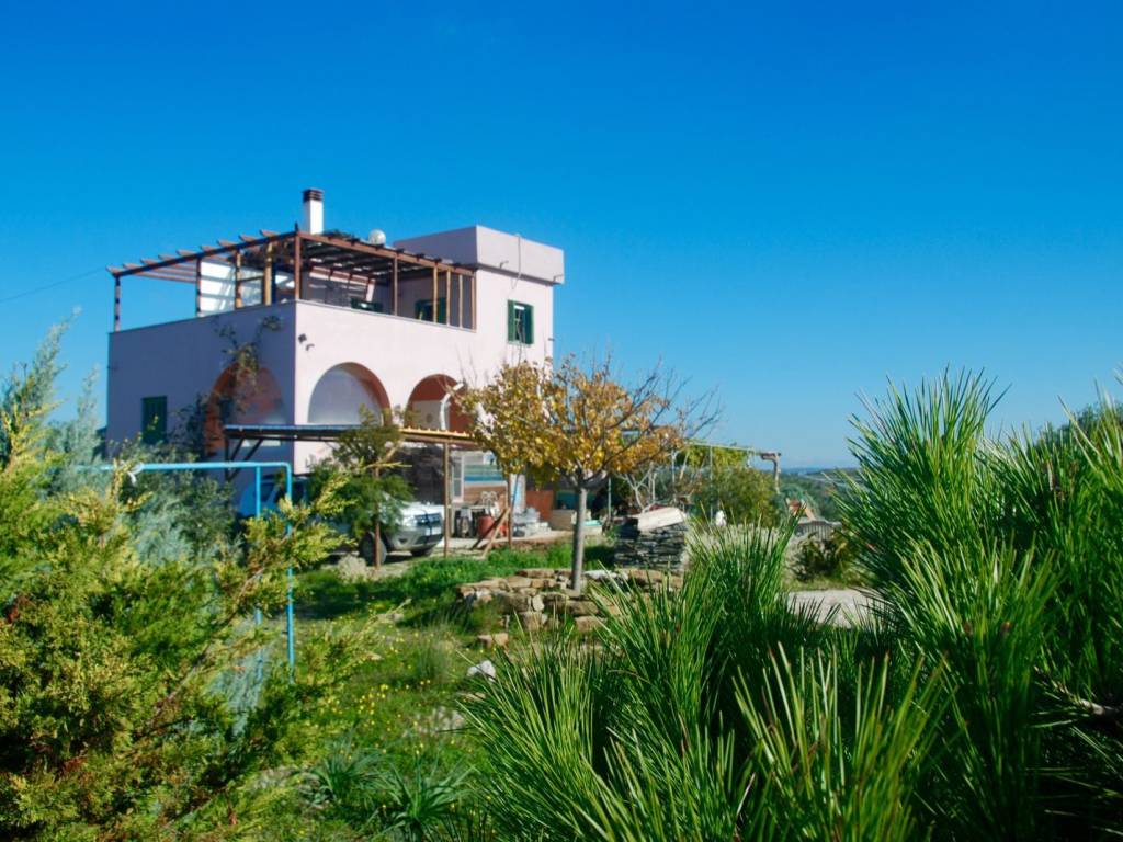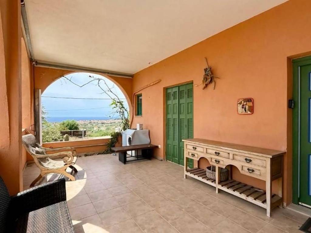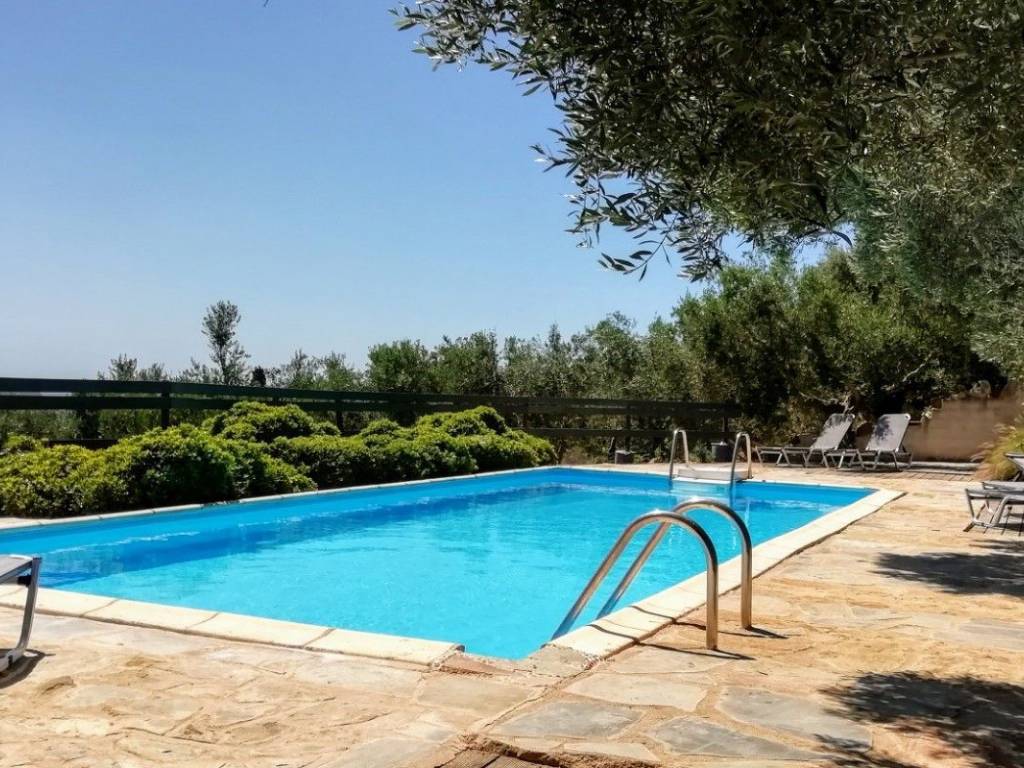 A plot of 9000m2 including 160 olive and fruit trees, overlooking the seaside village of Methoni and castle. Beautiful sweeping sea and countryside views. The estate consists of a 200m2, 3 bedroom house and 2 x 60m2, 2 bedroom houses and a 10x4m swimming pool. Ideal for tourist holiday rental, extended family resort or retreat centre. Vine covered outdoor dining and seating areas. Parking area. Requires some renovation. 800m to the beach. 3.5 hours Athens 60km Kalamata