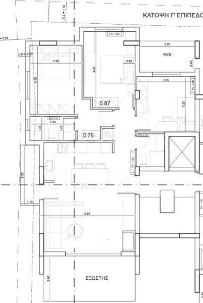 Halandri, Centre - Apartment 95sqm bedrooms 3, levels 1, 3rd, under construction, year built 2026, energy class A+, living room, hall, kitchen, bathroom, wc, heating type: autonomous (heat pump), parking ground floor,2, quiet, dual aspect apartment, luminous, unobstructed view, frontage, painted, electric roller shutters, storage space, external thermal insulation, large balconies, elevator, thermal shut-off frames, double glazed windows, door screen, wood & tile floors, handicap ramp, night electricity discount rate, secure door, alarm, video doorbell, luxurious, pets allowed, within city plan, residential zone, north-eastern orientation, access from asphalt, close to metro/train (up to 1000m).