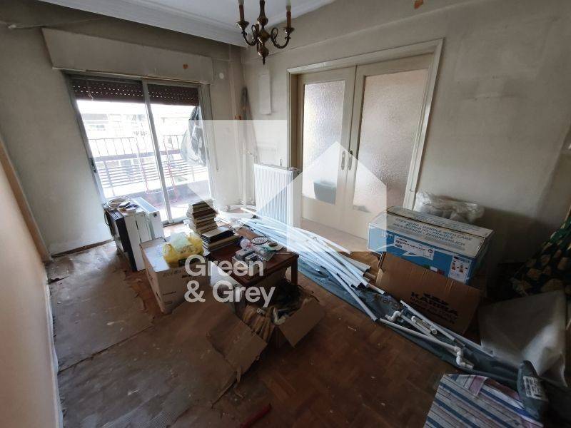A corner, front-facing penthouse on the 4th floor in Kalamaria is available, 110 sq m. gross (88 sq m. net), in a post-earthquake building from 1980 with an elevator and a parking space in the piloti. The property is in the process of completing a general renovation and will be available from the end of January. It has individual natural gas heating (just installed), a new kitchen with a small practical balcony, a renovated bathroom, terrace insulation, air conditioning, an armored security door, awnings and wooden and tiled floors. The layout includes two living rooms separated by a sliding door, 3 bedrooms (possibility of a 4th bedroom), kitchen, bathroom and hallway, as well as a large perimeter front balcony, ideal for a table and daily use. Very bright, freshly painted, with a large closet, ideal for a family or demanding living.