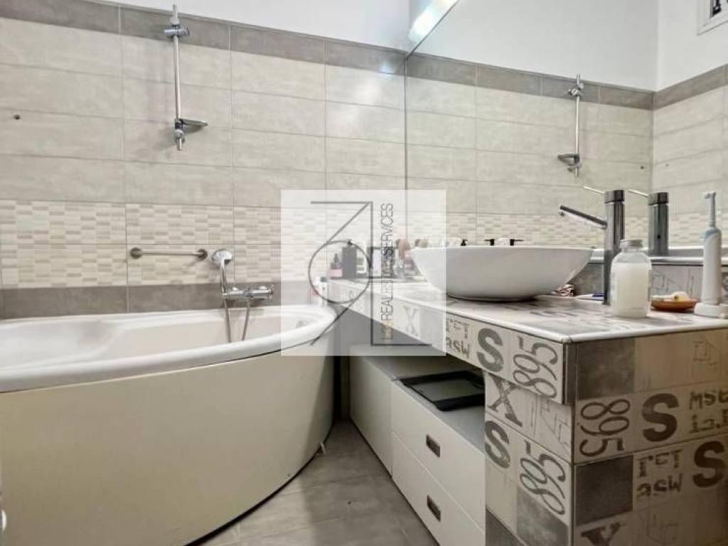 The apartment comprises four spacious bedrooms, a fully functional kitchen, two living rooms, two bathrooms, and an additional WC, making it ideal for large families. It is equipped with aluminum window frames, energy efficiency class D, a fireplace that adds warmth and character, and a solar water heater for reduced energy costs.