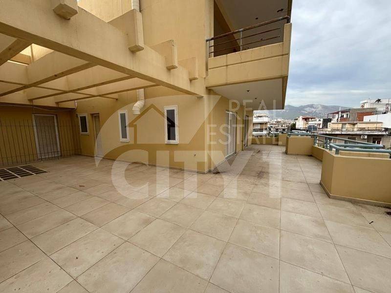 Acharnes (Menidi) - Apartment 80sqm unfurnished, bedrooms 2, levels 1, 2nd, fully renovated, year built 1990, renovation year 2025, energy class D, living room, hall, kitchen, bathroom, heating type: autonomous (electricity), air condition, quiet, dual aspect apartment, luminous, unobstructed view, frontage, painted, storage space surface area 1sqm, balconies, large balconies, balcony 50sqm, tents, aluminum frames, double glazed windows, door screen, ceramic tiles floors, secure door, luxurious, pets allowed, residential zone, west-southern orientation, close to αθλητικές εγκαταστάσεις (up to 0), close to στάση λεωφορείου/τρόλεϋ (up to 0).