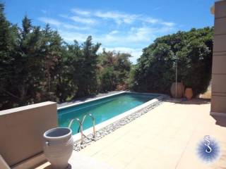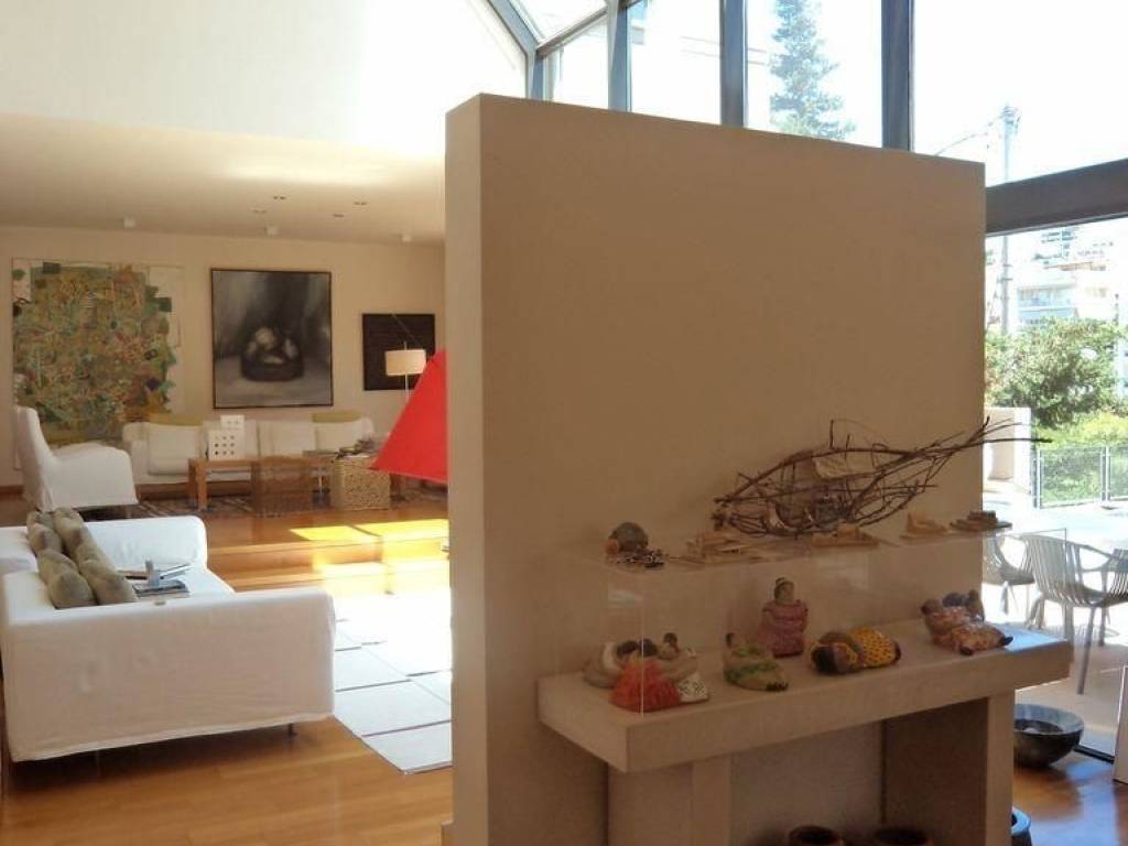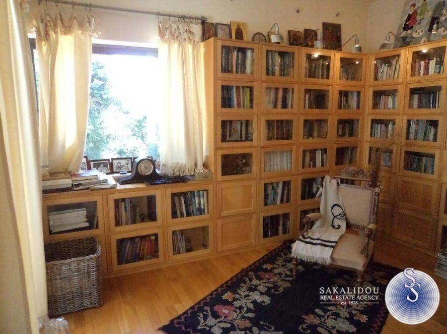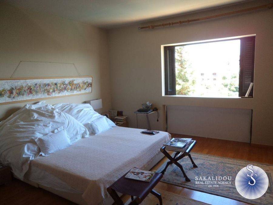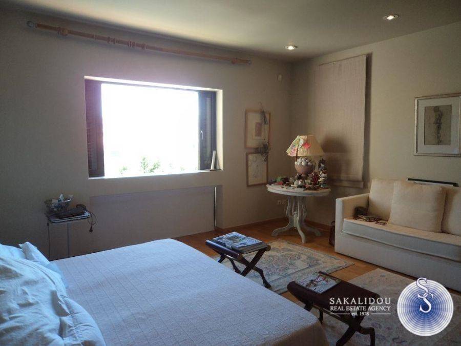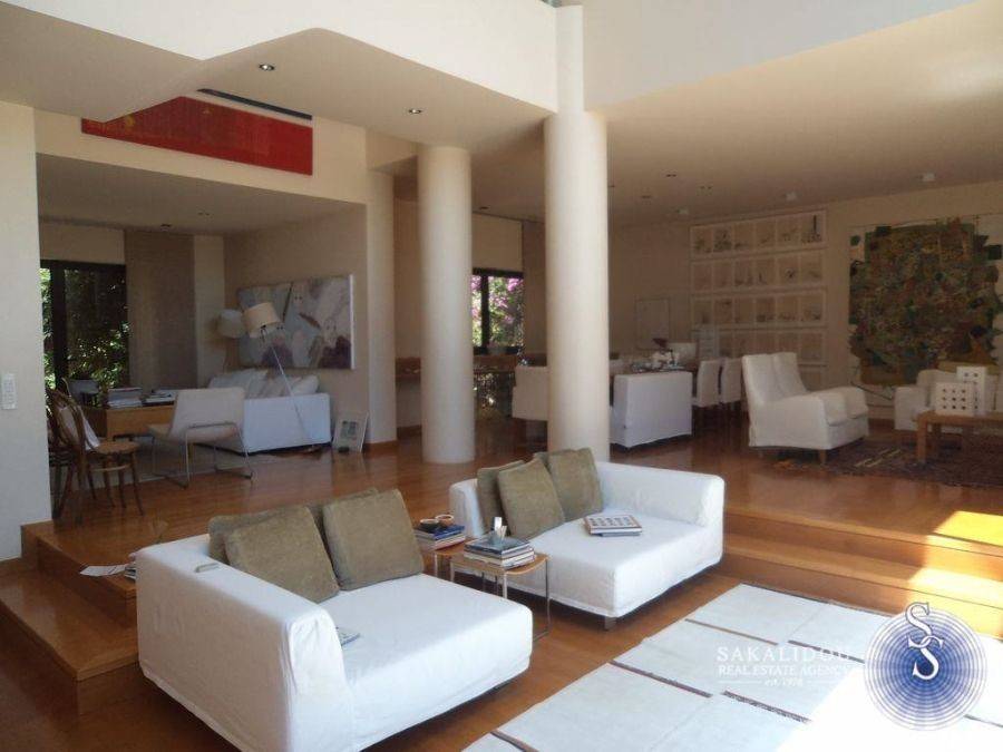 In the prestigious area of Voula, Dikigorika, this stunning luxury detached residence of 480 sq.m. is set on a 550 sq.m. plot, featuring exceptional minimal architecture and high-end construction standards. The property is arranged over three levels and offers absolute privacy, comfort, and refined elegance. It boasts a unique, exceptionally bright living room with large glass openings and direct views of the beautiful swimming pool and landscaped garden, creating an ideal setting for relaxation and entertaining. The closed, fully equipped kitchen combines functionality with contemporary design, while the library and the elegant playroom complete the living areas in a harmonious way. The residence features four master bedrooms, all with en-suite bathrooms, as well as a staff room with its own bathroom. Oak wooden floors add warmth and timeless sophistication throughout the home. Additional features include independent heating, air conditioning, alarm system, security door, two storage rooms, and underground parking for two vehicles.