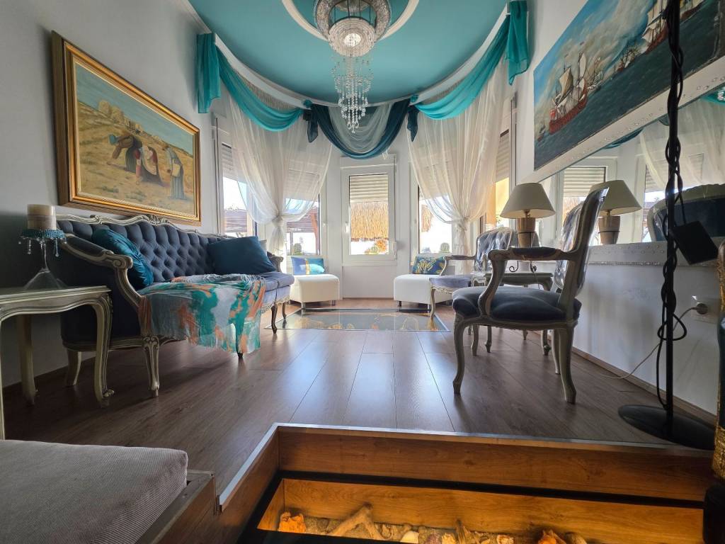 ΜΕΣΙΤΙΚΟ ΓΡΑΦΕΙΟ ΧΡΥΣΙΚΟΣ Πωλείται υπερυψωμένη ισόγεια λούξ κατοικία 87 τ.μ., σε οικόπεδο 230 τ.μ., μέρος διπλοκατοικίας με ανεξάρτητη είσοδο, σε εξαιρετική παραθαλάσσια τοποθεσία στις Νέες Παγασές Βόλου, μόλις 3 μέτρα από τη θάλασσα και τον κήπο. Πρόκειται για ένα ιδιαίτερο ακίνητο με μοντέρνα αισθητική και υπέροχο design!!! Η κατοικία διαθέτει 2 υπνοδωμάτια με εντοιχισμένες ντουλάπες, ενιαίο χώρο σαλονιού – κουζίνας,1 μπάνιο με ντους & WC και . Το καθιστικό αναπτύσσεται σε δεύτερο επίπεδο με ημικυκλικό σχεδιασμό και πανοραμικά ανοίγματα με θέα στη θάλασσα, ενώ ιδιαίτερο στοιχείο αποτελεί το γυάλινο δάπεδο με φωτισμό, διακοσμητική άμμο και κοχύλια. Η κουζίνα είναι σύγχρονη, με εντοιχισμένες ηλεκτρικές συσκευές, ενώ το πάσο πρωινού βρίσκεται μπροστά σε παράθυρο με θέα Πήλιο, πόλη του Βόλου και θάλασσα (βόρειος προσανατολισμός). Το ακίνητο πωλείται πλήρως επιπλωμένο, όπως απεικονίζεται στις φωτογραφίες (εξαιρούνται οι πίνακες). Εξωτερικοί Χώροι: -Υπερυψωμένη βεράντα 10 τ.μ. με πρόσβαση από την κουζίνα -Ανατολική βεράντα 20 τ.μ. στο master υπνοδωμάτιο με κύρια είσοδο -Πίσω είσοδος με βοηθητικό διάδρομο και τέντα -Τρίτη υπερυψωμένη βεράντα 8 τ.μ. με πέργκολα, LED φωτισμό και εξωτικό γκαζόν Τεχνικά Χαρακτηριστικά: -Πλήρης ανακαίνιση το 2022 -Ενεργειακή κλάση A+ -Εξωτερική θερμομόνωση σε όλο το σπίτι & θερμομονωμένο δάπεδο -Κουφώματα PVC με ενεργειακά τζάμια & σίτες -Δάπεδα laminate -Αυτόνομη θέρμανση & ψύξη με αντλία θερμότητας και fan coils -Ζεστό νερό από ηλιακό & ηλεκτρικό θερμοσίφωνα -Τέντες σε βεράντες και παράθυρα Επιπλέον Παροχές: -Εξωτικός κήπος με φωτισμό, σιντριβάνι και ξύλινα φαναράκια -Περίφραξη ιδιωτικότητας με φράχτη -Αποθήκη 20 τ.μ. -Ελεύθερη στάθμευση -Ιδιωτική θέση ελλιμενισμού σκάφους σε μικρή μαρίνα σε απόσταση 40 μ. -Δυνατότητα ελλιμενισμού μεγαλύτερων σκαφών σε απόσταση 100 μ. Τοποθεσία: Σε τουριστική περιοχή με άμεση πρόσβαση σε παραλίες, ξενοδοχεία και εστιατόρια. Πολύ κοντά σε σούπερ μάρκετ, φούρνο, κρεοπωλείο, σχολεία και παιδική χαρά. Παραθαλάσσιος πεζόδρομος χωρίς αυτοκίνητα, ιδανικός για περπάτημα, τρέξιμο και ποδήλατο. 7 λεπτά από το κέντρο και το λιμάνι του Βόλου, με συνδέσεις προς τις Βόρειες Σποράδες. ⭐ Ιδανικό για: -Μόνιμη κατοικία -Εξοχική κατοικία -Επενδυτικό ακίνητο (Airbnb) Επικοινωνήστε μαζί μας για περισσότερες πληροφορίες ή για να προγραμματίσετε επίσκεψη. 2421409131, 6906893512