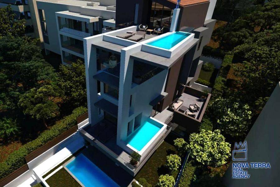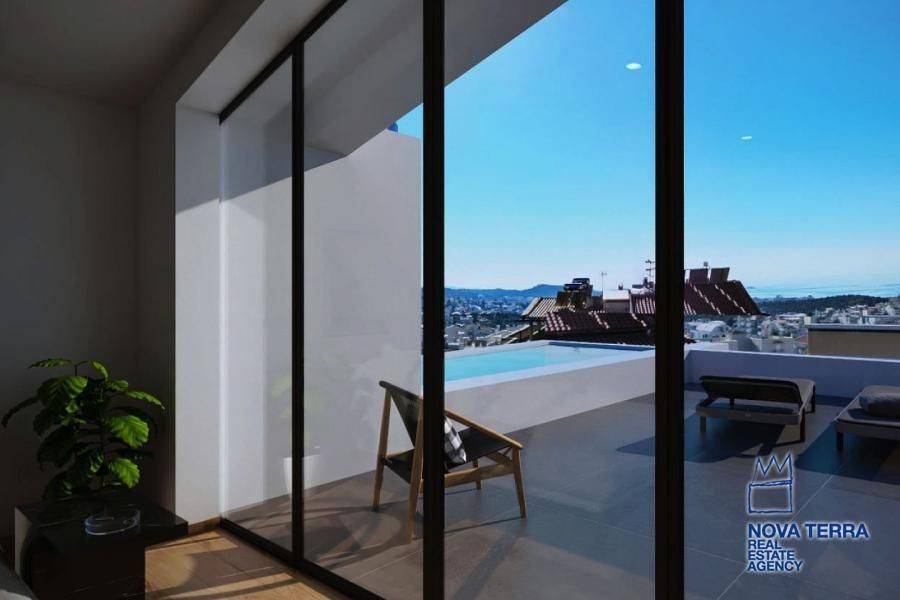 VOULA - KALYMNIOTIKA, Penthouse,, Sale, 148 sq.m, year built 2023, 3 rooms, 3rd, 4th, Various Characteristics: Balcony, Bath (2), Escalator, Fire Place, Kitchen, Living room, Store Room, Swimming Pool, Toilet, Master Bedrooms: 1 Master Bedroom, Flooring: Wooden floor, Heating: Air Conditioning, Autonomous Heating (auto-system), Floor heating, Access road, Aluminium panels, Bright, Double-glazing, Electric Roller Windows, Facade, From Side to Side, Luxury, Minimal, Newly built, Night charge, Painted, Residential area, Satellite TV, Screens, Security Alarm, Security Door, Solar Heating, Wheelchair Facilities, In perfect condition: : : Parking area: Garage (2), Energy class: A. property ID: 48398, www.nova-terra.gr