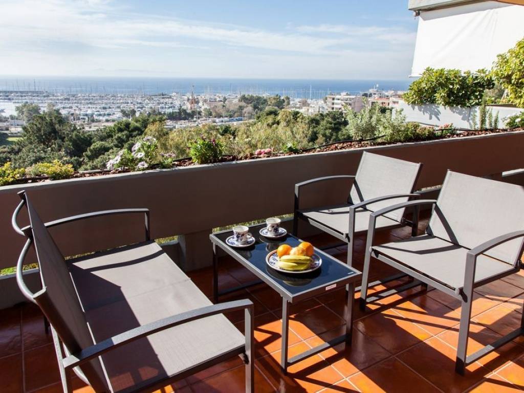 Engel & Völkers presents in Exclusivity this magnificent penthouse in Alimos, is located on the last (6th floor) of a beautiful building of high architectural value, fully renovated in 2024 with an unobstructed view of the entire city. Magnificent sea view and Alimos marina view from one side and a panoramic view of Athens, including the Acropolis and mount Lycabettus, from the other side of the penthouse. Luxuriously furnished and renovated with a separate room for the kitchen, very large living room and entryway. Dreamy apartment with all the benefits of the Athenian Riviera. Fully equipped kitchen, living room with tv and two bathrooms. Two bedrooms and the living room offer magnificent view to the sea. This penthouse features a huge (80 sqm) veranda with great view to Alimos marina. Ideal for couples or families looking to relax and enjoy the sea and the sun, along with exploring the historic center of the Athens which is 15' away by car. The property is available fully furnished or semi-furnished after agreement with the owners. For more information or to schedule a viewing, contact Engel & Völkers. The area of Alimos is located on the Athenian Riviera and is one of the up-and-coming neighborhoods in the southern part of Athens, just 7.7 km from the city center and close to the port of Piraeus. Unique features: A family-friendly seaside neighborhood that still preserves its authenticity. Alimos offers coastal walks, easy access to beaches, cafés, restaurants, and summer beach bars and clubs. The housing market in Alimos presents an investment opportunity with potential for return on investment, both for families and for buyers without children, as it is close to schools, cultural centers (such as the Stavros Niarchos Foundation), and marinas for those who own boats or enjoy renting them for sea getaways. Ideally located between the city center and the coastal shoreline, Alimos provides easy access to the tram, train stations, and buses, and is only a 15-minute drive from the port of Piraeus—offering a quick escape to the islands—and 45 minutes from the international airport.