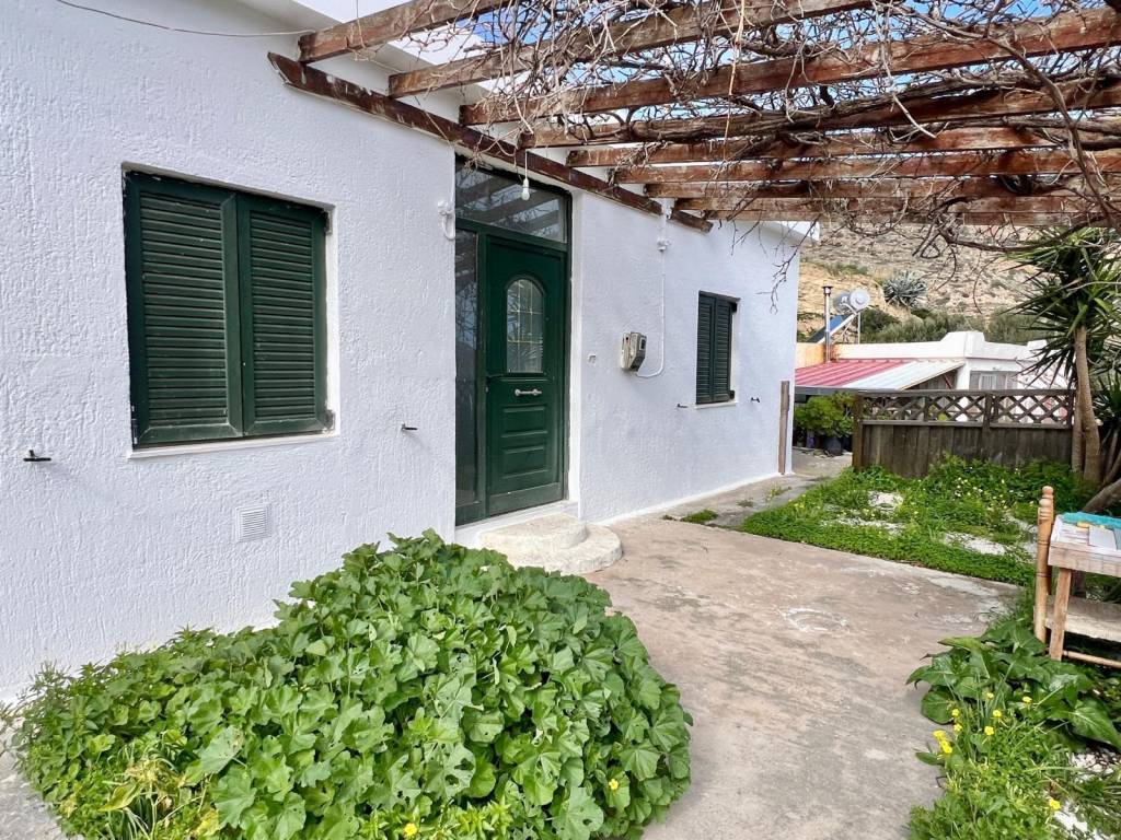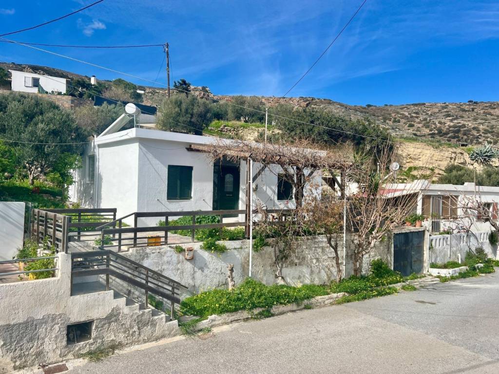 This single-storey house of 73 sq.m. on a plot of about 210 sq.m. is located in the traditional village of Vasiliki, just a short distance from the coastal village of Pachia Ammos and its beautiful sandy beach. From the street, a small staircase leads up to the property and into the front yard, which offers ample space to create an outdoor lounge area with a pergola and landscaped garden. The house has been partly renovated and offers a solid base for further improvement. Internally, it comprises a small entrance hallway, a kitchen, one bathroom and 3 rooms (that can be converted into 2 bedrooms and 1 living room). One of these rooms opens directly onto a wrap-around side yard, providing an extra outdoor living space. Next to the bathroom, there is an open space where a laundry area could be made. An additional feature of the property is the flat roof, which offers the possibility of creating a roof terrace if desired, allowing for even better views of the surrounding area. This property is an excellent opportunity for those seeking a village home close to the sea, with plenty of scope to add personal touches and increase its value. The house has very good road access and there is easy parking on the street. The village of Vasiliki has a few taverns and traditional cafeneieons and a some small shops. The larger seaside village of Pachia Ammos with its nice sandy beach is 5 minutes drive and the town of Ierapetra is a 15 minute drive. The international airport of Heraklion is an hour’s drive from Vasiliki.