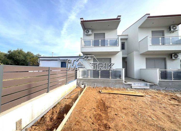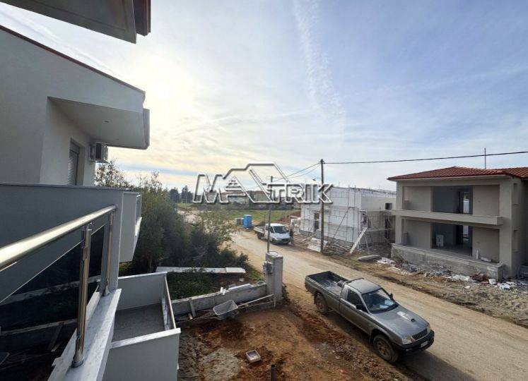 Chalkidiki, Kalyves Polygyroy, newly built maisonette 78 sqm. It consists of two bedrooms, living room- kitchen and two bathrooms. It has aluminum window frames with double glazing, recoil and nets, tiled floor, armorized door, solar heater, two a/c, one parking space for exclusive use, exclusive back yard of approximately 30 sqm, as well as an outdoor storage of 15 sqm. It is extremely bright and airy, it is located in a strategic point and its distance from the sea is 300m.