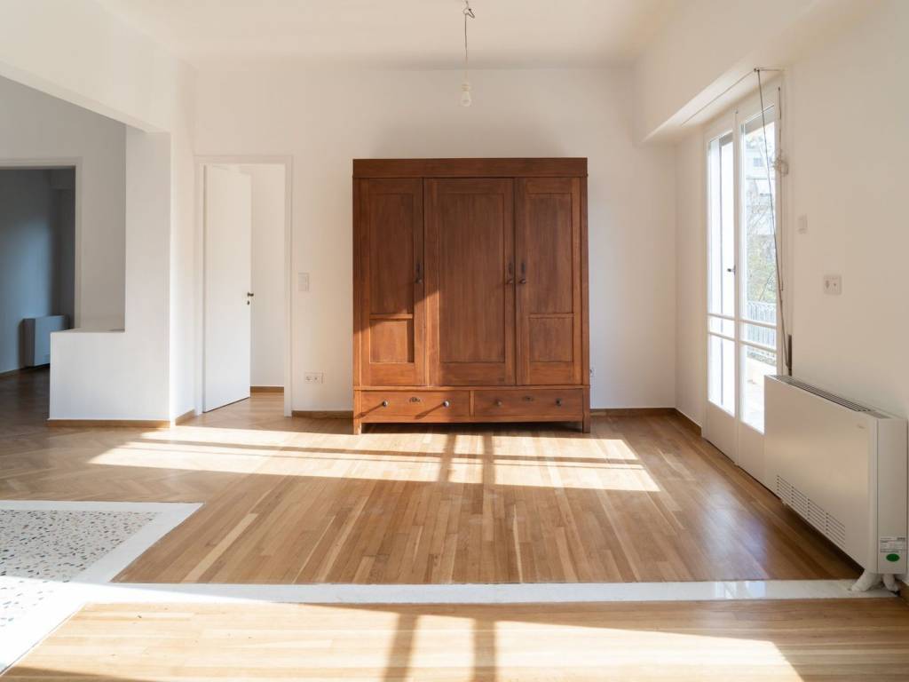 Engel & Völkers presents an eclectic aesthetics, second-floor apartment in Victoria. With a total living area of 109 sq.m., this versatile property is ideal as a residence, business space, or office. The apartment features a spacious open-plan living and dining area overlooking Victoria Square, seamlessly connected to a modern kitchen. There are three bedrooms, each with ample storage, a laundry or additional storage room, and two bathrooms equipped with luxurious rain showers. Both the living area and one of the bedrooms have access to private balconies. Meticulously renovated with attention to the property’s aesthetic heritage, the apartment boasts high-quality finishes and sophisticated design. Highlights include excellent parquet flooring, mosaics, marble, and tiles, as well as multiple storage solutions. The kitchen is equipped with a premium countertop, built-in ceramic hobs, and an electric oven. Comfort and security are ensured with a Fan Coil air conditioning system and an alarm system. Additional advantages include a well-maintained building with an elevator and low monthly utilities. This property represents a rare combination of style, functionality, and prime location—truly an outstanding apartment. The apartment enjoys an excellent location in Victoria Square and next to the Victoria Train - ISAP Station, one of Athens’ most vibrant and sought-after areas. The Victoria district experienced significant development in the 1930s, becoming home to elegant family residences and some of Athens’ earliest examples of Bauhaus, Art Deco, and modernist architecture. At the time, it ranked among the city’s most prestigious residential areas, rivaled only by Kolonaki and Plaka. Since around 2009, Victoria has undergone a remarkable revival. The area has attracted an international and cosmopolitan community of permanent residents, while Athenians have rediscovered its unique character and architectural heritage. Today, Victoria is considered an up-and-coming neighborhood, offering a lively residential atmosphere enriched by cafés, restaurants, theaters, and a vibrant nightlife. Victoria Square is now one of Athens’ most popular meeting points, known for its cultural diversity, and dynamic urban lifestyle, making the area an excellent choice for living.