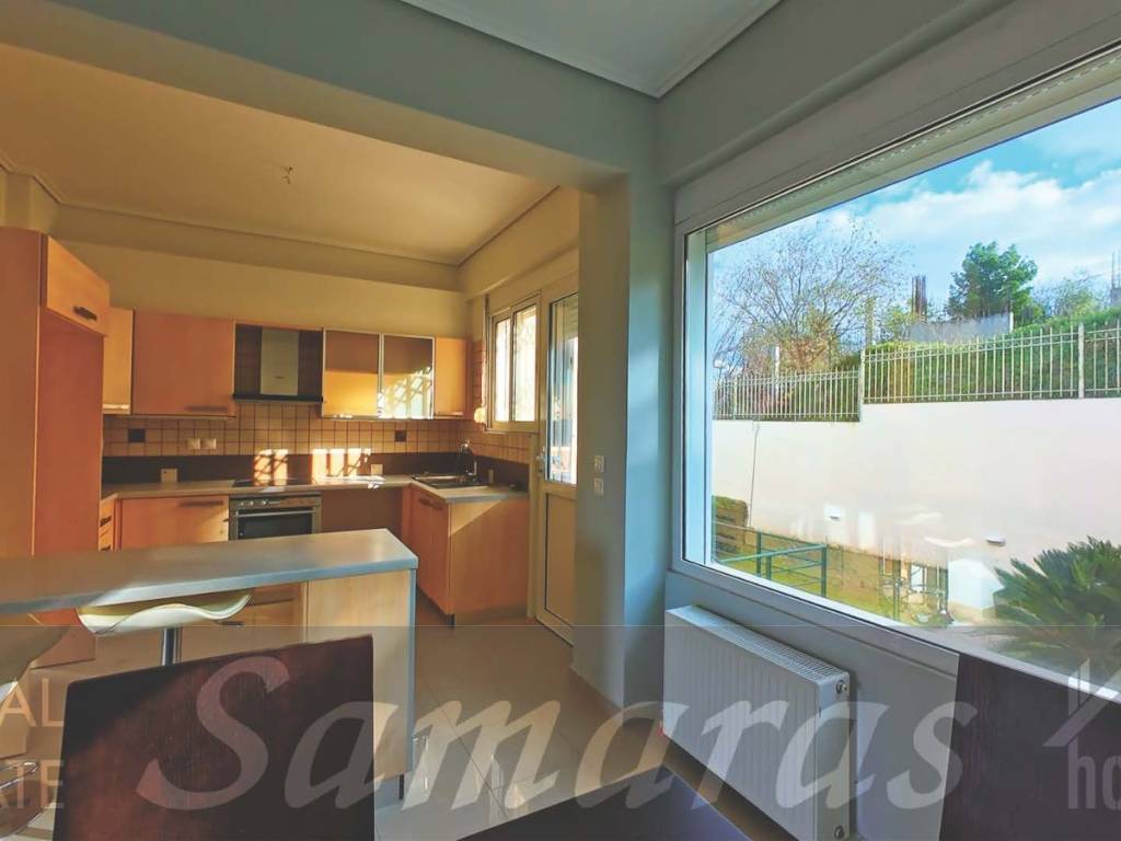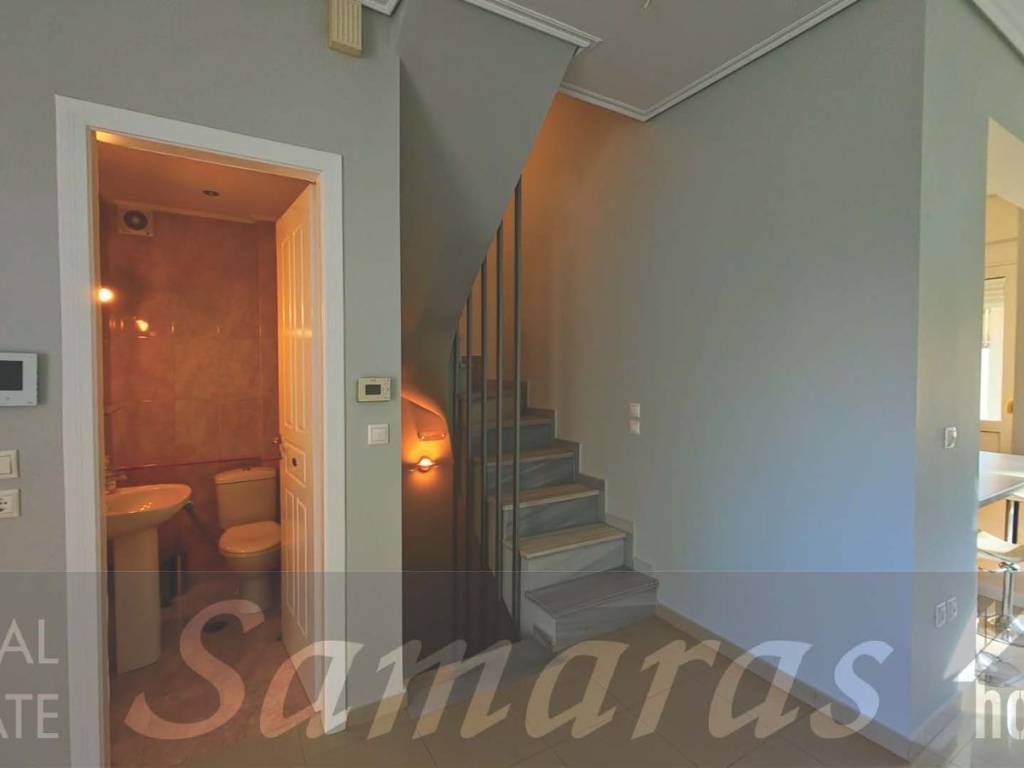 Spata, Christoupoli, detached house built in 2006, on 3 levels in a complex of 4 independent maisonettes. It consists of a raised ground floor, living room with fireplace, dining room, kitchen with access by external staircase to the back of the shared garden, 1 guest wc. Going up the internal staircase to the first floor of the maisonette we find 2 independent bedrooms with wardrobe, an office space that can be a third bedroom and a bathroom. Continuing to the last level we find the terrace that has been designed as a relaxation area with barbecue access with amazing views. In the semi-basement of the house we find the playroom that can also be used as a bedroom or storage space with access to a bathroom and the stairwell where the oil boiler is located. The semi-basement also has access to the back shared garden. Autonomous oil heating, solar water heater, aluminum, security door, in very good condition, private parking for one car, shared. Developing area, just 2 minutes from the Rafina-Attiki Odos entrance-exit.