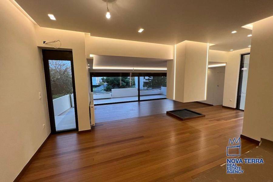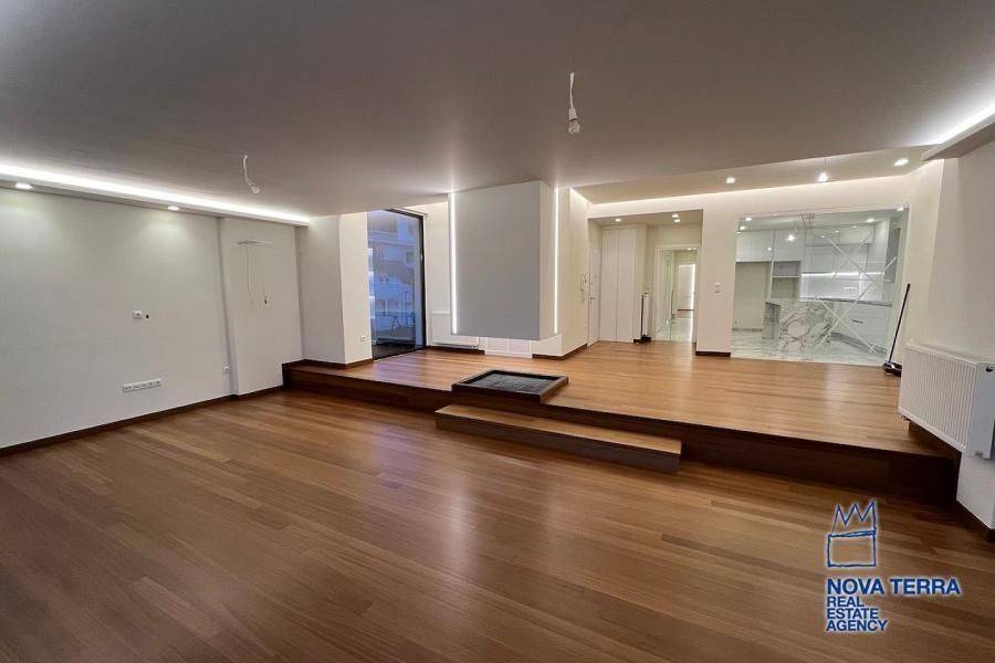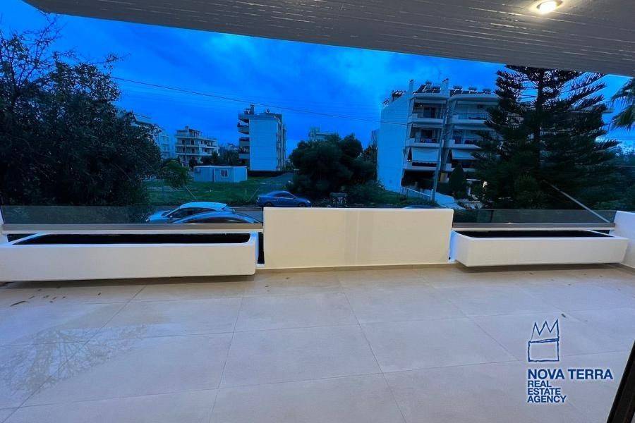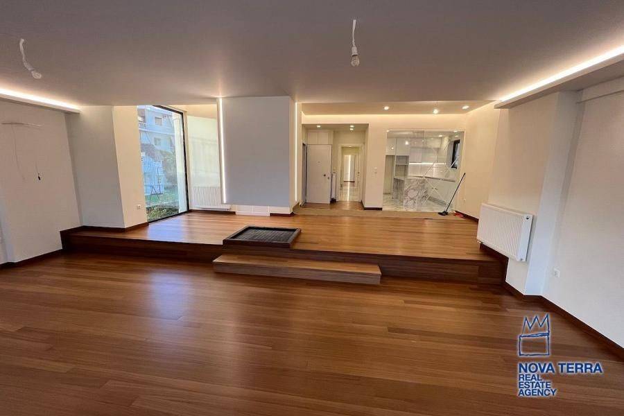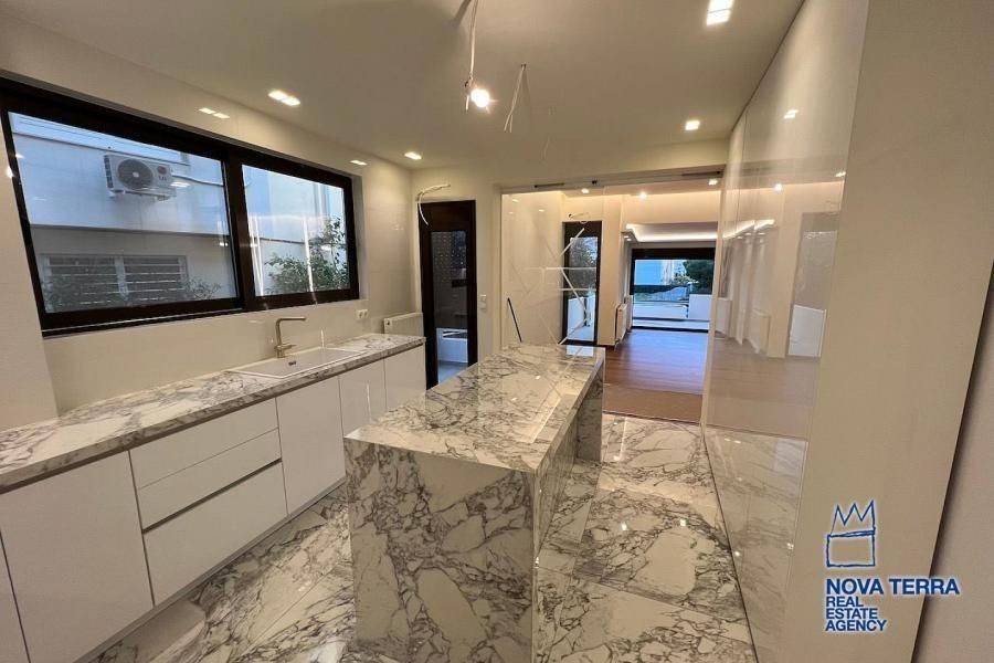 . property ID: 48Glyfada (North), 2nd floor apartment of 182 sq.m., open-plan living room, dining room with hanging fireplace, hidden lighting, spacious kitchen, 3 master bedrooms with en-suite bathrooms, 3 bathrooms, WC, laundry room, wrap around verandas, fully and luxuriously refurbished, communal landscaped garden with gathering area, bbq, power supply and built in outdoor seating.729, www.nova-terra.gr