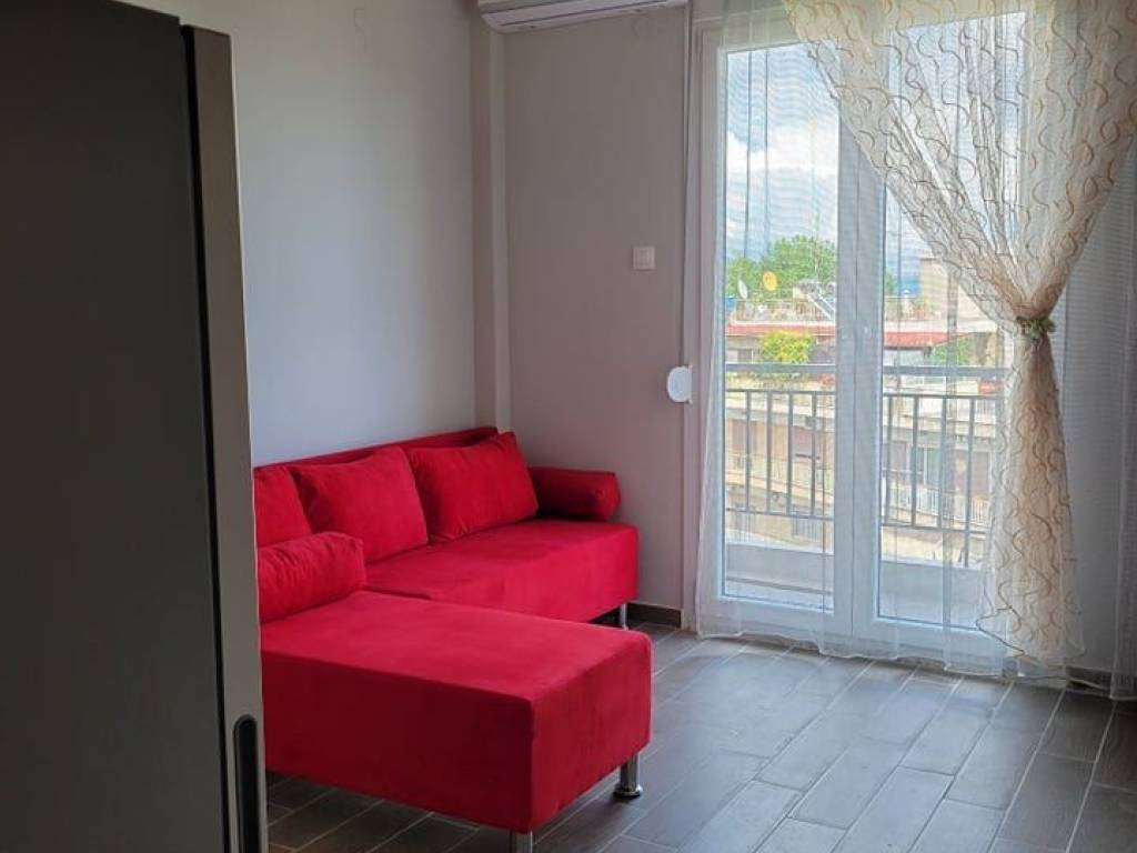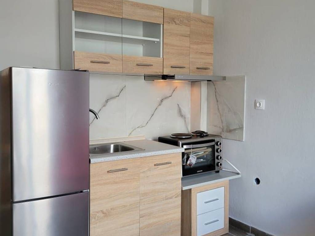 The apartment is located in the town center, near Agia Varvara. It's on the third floor of a building, which has an elevator. The space is very bright, east-south facing with a view of Agia Varvara. It is furnished and equipped with electrical appliances (washing machine, refrigerator, oven, and television).