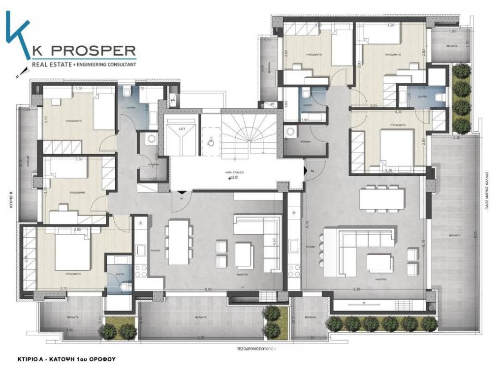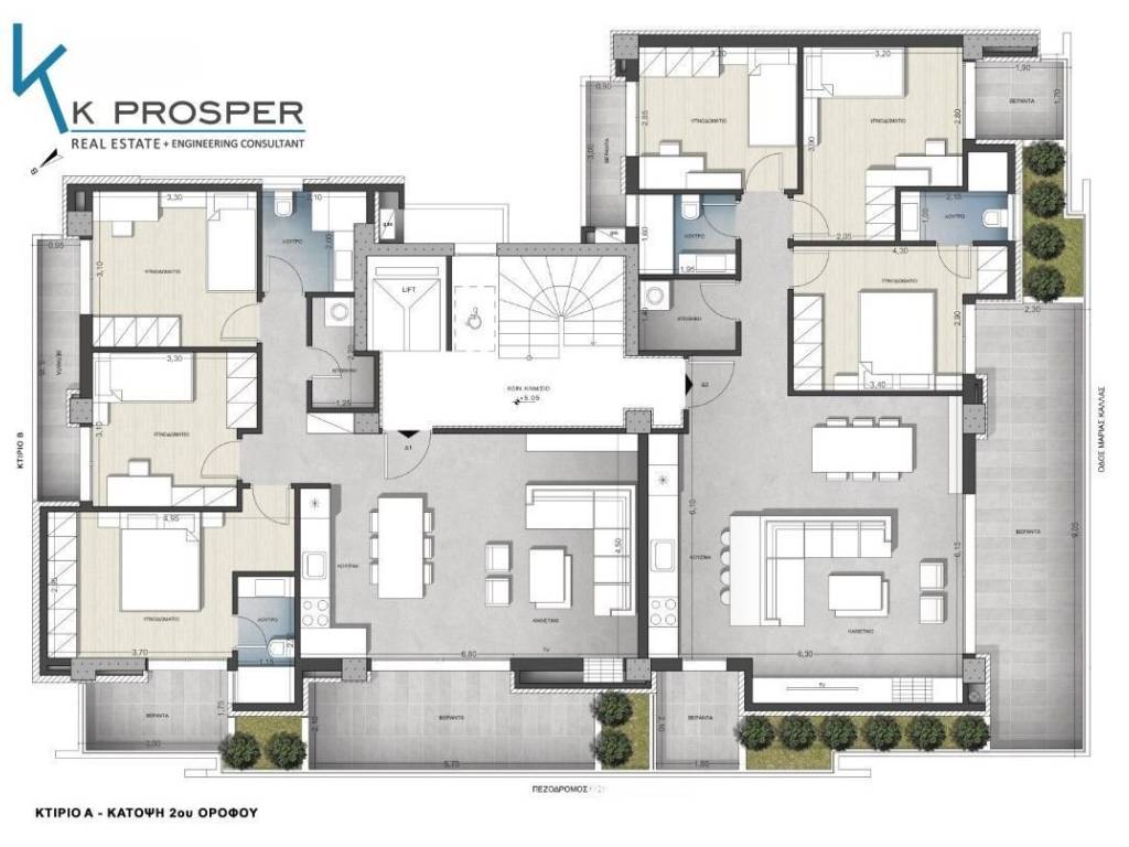 Πωλούνται πολυτελή νεόδμητα διαμερίσματα 1ου και 2ου ορόφου οικοδομής, με μία θέση στάθμευσης το καθένα σε πυλωτή και αποθήκη στο ισόγειο, στην περιοχή της επέκτασης του οικισμού της Θέρμης, επιφάνειας 120τ.μ., 290.000€ Τα εν λόγω διαμερίσματα αποτελούνται από τρία υπνοδωμάτια, το ένα από τα οποία περιέχει και δικό του λουτρό, έναν ενιαίο μεγάλο χώρο σαλοτραπεζαρίας – κουζίνας με την είσοδο της κατοικίας, ένα επιπλέον λουτρό, έναν χώρο αποθήκης εντός του διαμερίσματος με όλες τις υποδομές για την τοποθέτηση του πλυντηρίου στο χώρο αυτό, καθώς και έναν διάδρομο. Όλες οι κατοικίες διαθέτουν μία μεγάλη άνετη βεράντα στην όψη του κτιρίου προς τον πεζόδρομο ή προς την δημοτική οδό, καθώς και ξεχωριστούς εξώστες από τα υπνοδωμάτια προς τις πλαϊνές όψεις της οικοδομής. Η οικοδομή διαθέτει ανελκυστήρα, καθώς και ισόγειες αποθήκες για το κάθε διαμέρισμα χωριστά. Η κατασκευή τους, καθώς και όλων των χώρων της οικοδομής θα ολοκληρωθεί στο τέλος του 2026. Η κατοικίες θα διαθέτουν: • αυτόνομη ενδοδαπέδια θέρμανση με ατομικό λέβητα φυσικού αερίου, • θερμοπρόσοψη σε όλες τις πλευρές του κτιρίου, • ντουλάπες σε όλα υπνοδωμάτια, • μεγάλα κουφώματα αλουμινίου διπλής υάλωσης της ALOUMIL, • θύρα εισόδου ασφαλείας, • θυροτηλεόραση, • σύστημα συναγερμού, • επώνυμα είδη υγιεινής, • δορυφορική κεραία, • εγκατάσταση κλιματισμού. Τα διαμερίσματα εντάσσονται σε ένα συγκρότημα σύγχρονων κατοικιών, με ενεργειακά χαρακτηριστικά, χαμηλό οικολογικό αποτύπωμα, σε εξαιρετική τοποθεσία και με έμφαση στο περιβάλλον. Σε κτίριο κατασκευασμένο από ανθρώπους με εμπειρία και γνώση των απαιτήσεων των σύγχρονων και άρτιων κτιρίων με υψηλή ποιότητα και τεχνολογικές προδιαγραφές. Κατάλληλα για κατοικία αλλά και για επενδυτικά. Αρίθμηση διαμερισμάτων: ΚΤΙΡΙΟ Α: 1ος ΟΡΟΦΟΣ – Δ1 & Δ2, 2ος ΟΡΟΦΟΣ – Δ1 & Δ2 ΚΤΙΡΙΟ Β: 1ος ΟΡΟΦΟΣ – Δ2, 2ος ΟΡΟΦΟΣ – Δ2 Κωδικός ακινήτου: ΠΚ66Β Κων/νος Κατσαρός: 6974755096