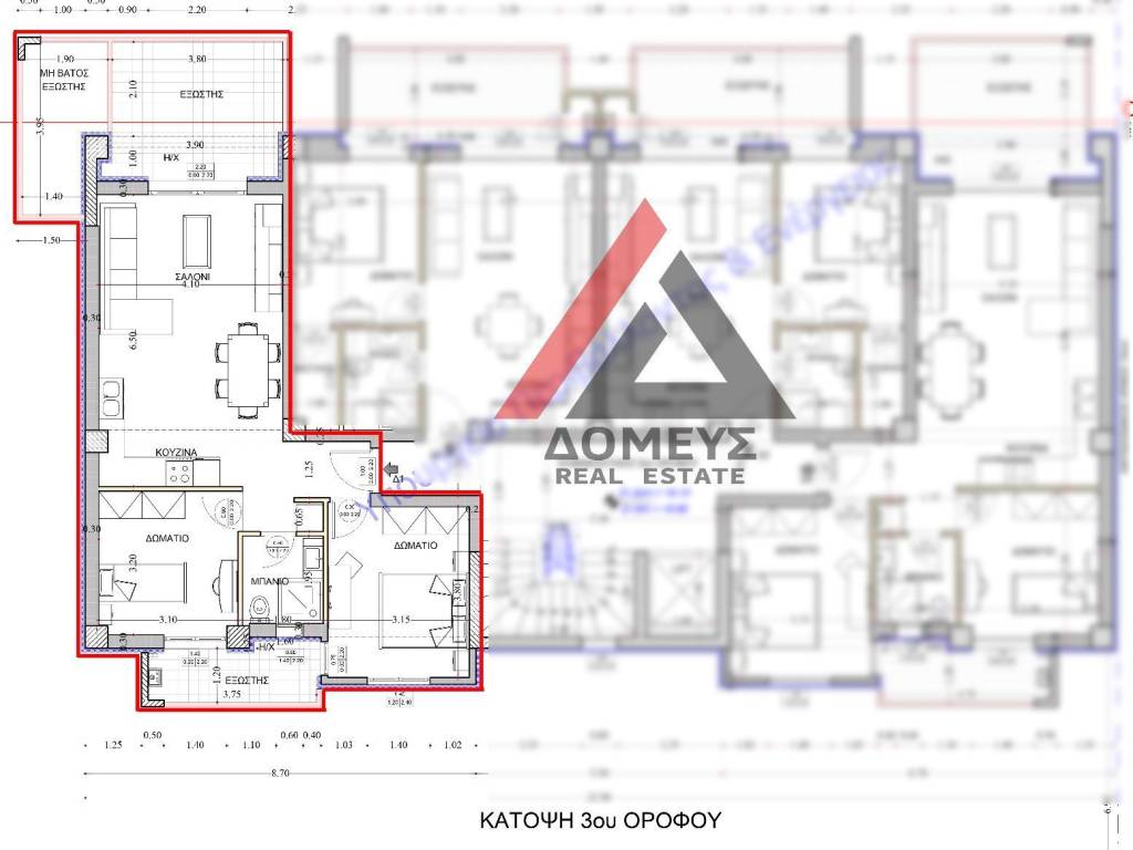 Θεσσαλονίκη, Εύοσμος, Α Ζώνη, Άνωθεν Περιφερειακού, ΠΩΛΕΙΤΑΙ: πολυτελές διαμέρισμα 3ου ορόφου, 6όροφης οικοδομής (υπό κατασκευή), εμβαδού 82τ.μ. μικτά και 67τμ καθαρά, αποτελούμενο από 2 υπνοδωμάτια, σαλοκουζίνα και μπάνιο. Διαθέτει θέση στάθμευσης με δυνατότητα φόρτισης EV (Electric Vehicle) και αποθήκη 6τμ στο υπόγειο. Η κατασκευή του αναμένεται να ολοκληρωθεί το Ιούνιο του 2027. Διαθέτει εξωτερικό θερμομονωτικό κέλυφος, κουφώματα αλουμινίου με θερμοδιακοπή, διπλά ενεργειακά τζάμια και υποδοχή για σίτες, θωρακισμένη πόρτα ασφαλείας, εσωτερικές πόρτες από επώνυμο οίκο, ενδοδαπέδια θέρμανση με λέβητα φυσικού αερίου, προεγκατάσταση για κλιματισμό, προεγκατάσταση για συναγερμό, προεγκατάσταση για ηλιακό θερμοσίφωνα, δορυφορική κεραία, βεράντες εμπρός και πίσω, ανελκυστήρα MRL 7 στάσεων και σύστημα πυρανίχνευσης. Το διαμέρισμα είναι προσόψεως, φωτεινό, διαμπερές, με ενεργειακή κλάση Α+, άριστη διαρρύθμιση, υψηλής ποιότητας υλικά και σύγχρονο μοντέρνο σχεδιασμό. Η οικοδομή έχει εξαιρετικό προσανατολισμό και θέα, ευρύχωρη κεντρική είσοδο ενώ πέριξ της πολυκατοικίας θα διαμορφωθεί χώρος με φυτά, θάμνους, βραχόκηπους και γκαζόν, θα διαθέτει φωτιστικά σώματα καθώς και σύστημα αυτόματου ποτίσματος. Η τοποθεσία του είναι εξαιρετική καθώς βρίσκεται σε μία από τις πιο ταχέως αναπτυσσόμενες περιοχές της Θεσσαλονίκης, λίγα λεπτά από τη Δυτική Περιφερειακή Οδό, προσφέροντας άμεση πρόσβαση και υψηλή προστιθέμενη αξία, τόσο για μόνιμη κατοικία όσο και για επένδυση. Σημείωση: Οι πληροφορίες και τα χαρακτηριστικά του ακινήτου έχουν καταχωρηθεί βάσει στοιχείων και πληροφοριών που προσκόμισε ο ιδιοκτήτης του ακινήτου. Για την υπόδειξη του ακινήτου είναι απαραίτητη η επίδειξη της αστυνομικής ταυτότητας και του Α.Φ.Μ. σας σύμφωνα με τον Ν.4072/11-4-2012 ΦΕΚ 86 Α. Για περισσότερες πληροφορίες και ραντεβού για να σας παρουσιάσουμε το ακίνητο, παρακαλούμε επικοινωνήστε μαζί μας. +306984158518