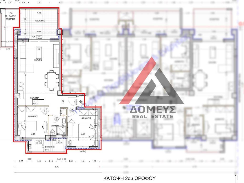 Θεσσαλονίκη, Εύοσμος, Α Ζώνη, Άνωθεν Περιφερειακού, ΠΩΛΕΙΤΑΙ: πολυτελές διαμέρισμα 2ου ορόφου, 6όροφης οικοδομής (υπό κατασκευή), εμβαδού 83τ.μ. μικτά και 68τμ καθαρά, αποτελούμενο από 2 υπνοδωμάτια, σαλοκουζίνα και μπάνιο. Διαθέτει θέση στάθμευσης με δυνατότητα φόρτισης EV (Electric Vehicle) και αποθήκη 6τμ στο υπόγειο. Η κατασκευή του αναμένεται να ολοκληρωθεί το Ιούνιο του 2027. Διαθέτει εξωτερικό θερμομονωτικό κέλυφος, κουφώματα αλουμινίου με θερμοδιακοπή, διπλά ενεργειακά τζάμια και υποδοχή για σίτες, θωρακισμένη πόρτα ασφαλείας, εσωτερικές πόρτες από επώνυμο οίκο, ενδοδαπέδια θέρμανση με λέβητα φυσικού αερίου, προεγκατάσταση για κλιματισμό, προεγκατάσταση για συναγερμό, προεγκατάσταση για ηλιακό θερμοσίφωνα, δορυφορική κεραία, βεράντες εμπρός και πίσω, ανελκυστήρα MRL 7 στάσεων και σύστημα πυρανίχνευσης. Το διαμέρισμα είναι προσόψεως, φωτεινό, διαμπερές, με ενεργειακή κλάση Α+, άριστη διαρρύθμιση, υψηλής ποιότητας υλικά και σύγχρονο μοντέρνο σχεδιασμό. Η οικοδομή έχει εξαιρετικό προσανατολισμό και θέα, ευρύχωρη κεντρική είσοδο ενώ πέριξ της πολυκατοικίας θα διαμορφωθεί χώρος με φυτά, θάμνους, βραχόκηπους και γκαζόν, θα διαθέτει φωτιστικά σώματα καθώς και σύστημα αυτόματου ποτίσματος. Η τοποθεσία του είναι εξαιρετική καθώς βρίσκεται σε μία από τις πιο ταχέως αναπτυσσόμενες περιοχές της Θεσσαλονίκης, λίγα λεπτά από τη Δυτική Περιφερειακή Οδό, προσφέροντας άμεση πρόσβαση και υψηλή προστιθέμενη αξία, τόσο για μόνιμη κατοικία όσο και για επένδυση. Σημείωση: Οι πληροφορίες και τα χαρακτηριστικά του ακινήτου έχουν καταχωρηθεί βάσει στοιχείων και πληροφοριών που προσκόμισε ο ιδιοκτήτης του ακινήτου. Για την υπόδειξη του ακινήτου είναι απαραίτητη η επίδειξη της αστυνομικής ταυτότητας και του Α.Φ.Μ. σας σύμφωνα με τον Ν.4072/11-4-2012 ΦΕΚ 86 Α. Για περισσότερες πληροφορίες και ραντεβού για να σας παρουσιάσουμε το ακίνητο, παρακαλούμε επικοινωνήστε μαζί μας. +306984158518