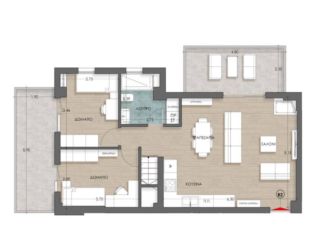 www.derxis.gr T2314031929 Διαμερισμα δυο επιπεδων 132τμ μικτα και 107τμ καθαρα με αποθηκη 28,5τμ και θεση σταθμευσης (1+1)